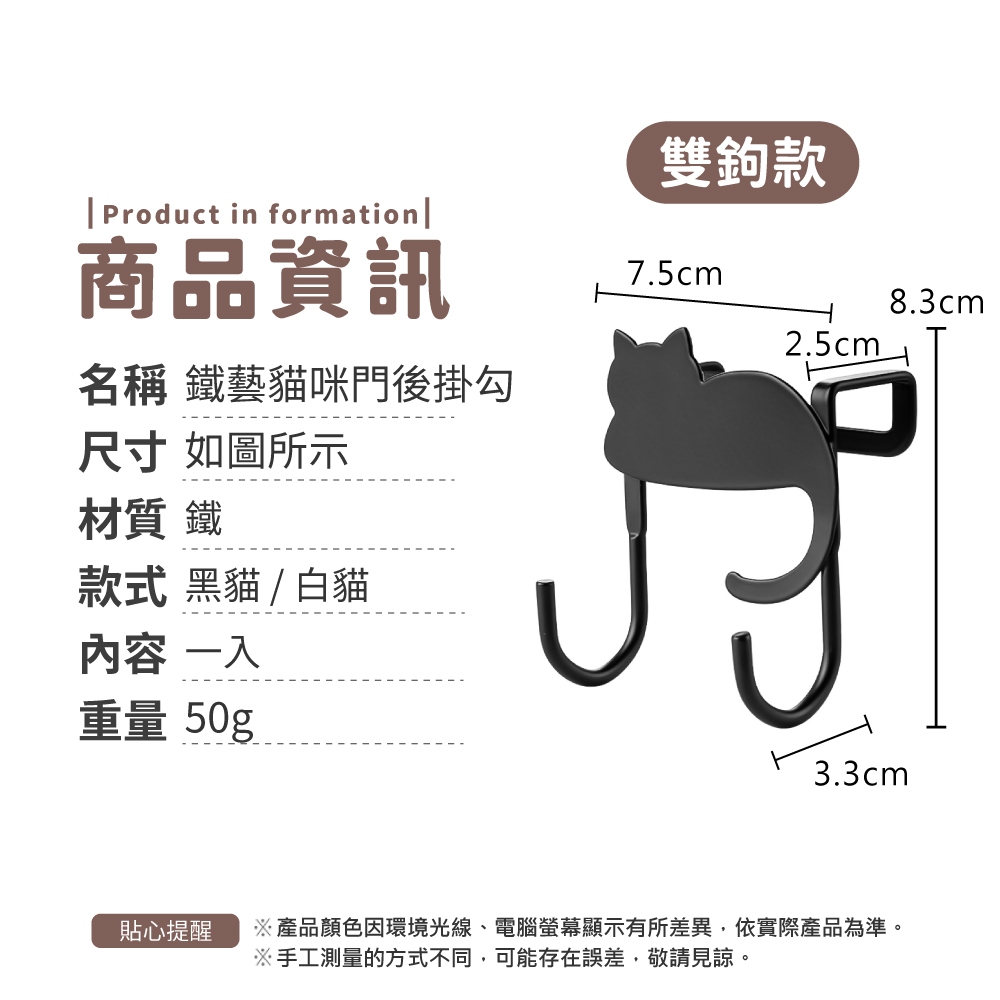 鐵藝貓咪門後掛鉤 貓咪掛勾 掛鉤 門後掛勾 櫥櫃掛勾 櫃門掛鉤 抽屜掛鉤 衣帽勾 掛衣 收納【小麥購物】【G879】單鉤款|黑貓|單鉤款|白貓|雙鉤款|黑貓|雙鉤款|白貓Hooks 小麥購物