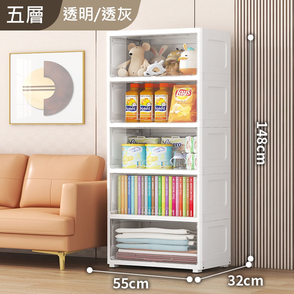 【AOTTO】無印簡約55面寬透明可視翻蓋五層收納櫃(置物櫃 收納櫃)透黑款|透明款Storage Boxes, Bags & BasketsAOTTO創意家居