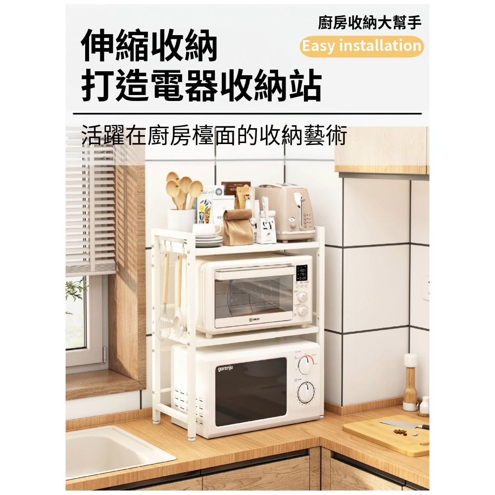 【AOTTO】多功能伸縮微波爐電器收納架(微波爐架 收納架 置物架)白色Kitchen RacksAOTTO創意家居