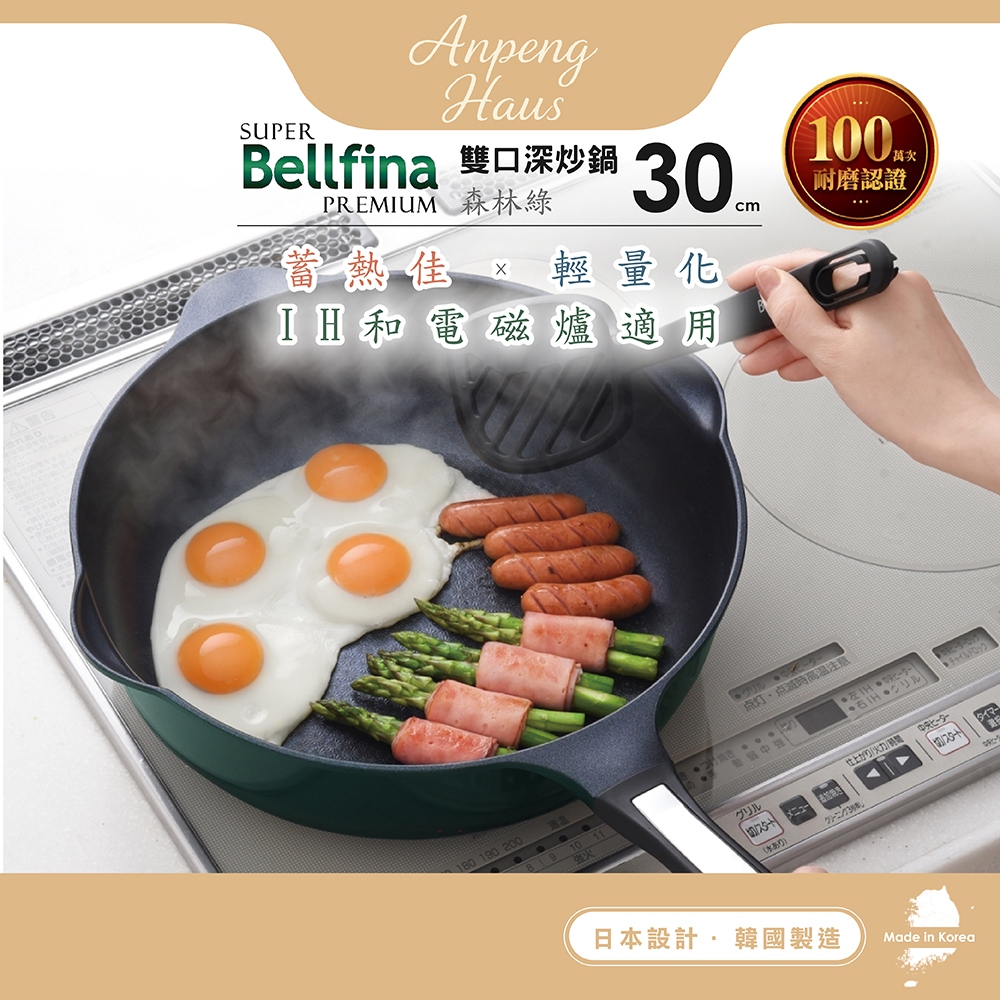 日本Arnest Bellfina鑽石超輕量雙口寬底不沾炒鍋30cm-(瓦斯爐款/電磁無款兩色可選)瓦斯爐適用單鍋組|瓦斯款含日製可立式鍋蓋|電磁爐適用單鍋組|電磁爐款含日製可立式鍋蓋PansAnpeng Haus