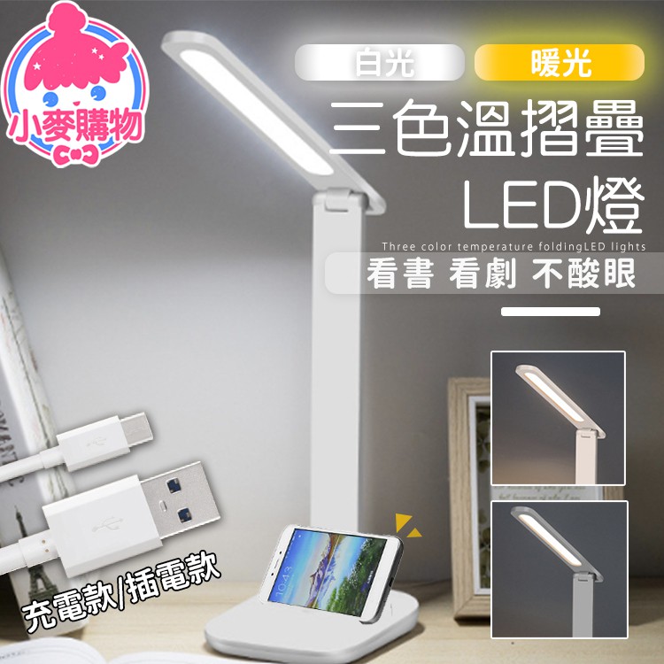 摺疊LED燈 摺疊檯燈 桌燈 檯燈 台燈 LED燈 三色溫 三段調光 立燈 護眼燈 閱讀燈 夜燈【小麥購物】【Y637】插電款|充電款 小麥購物
