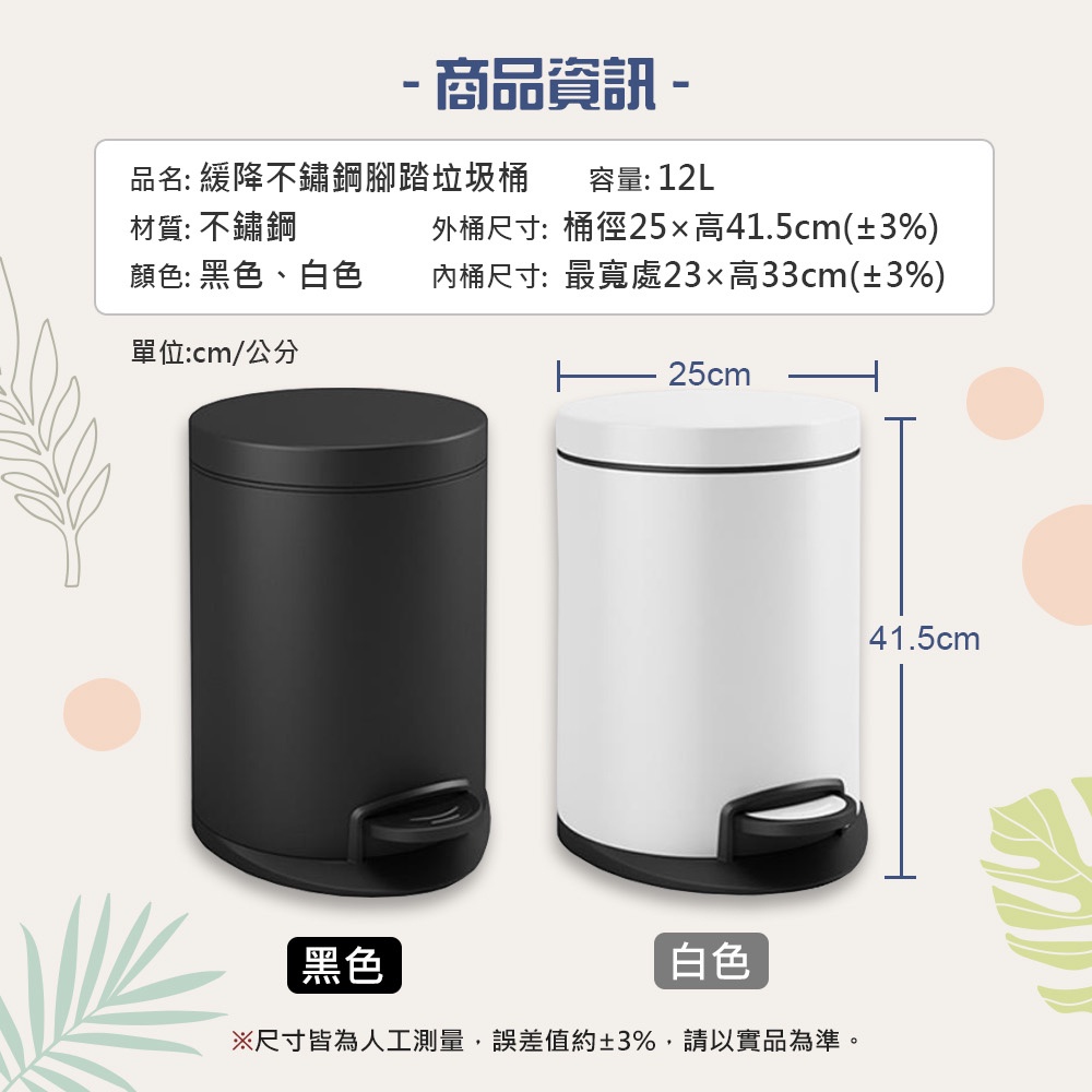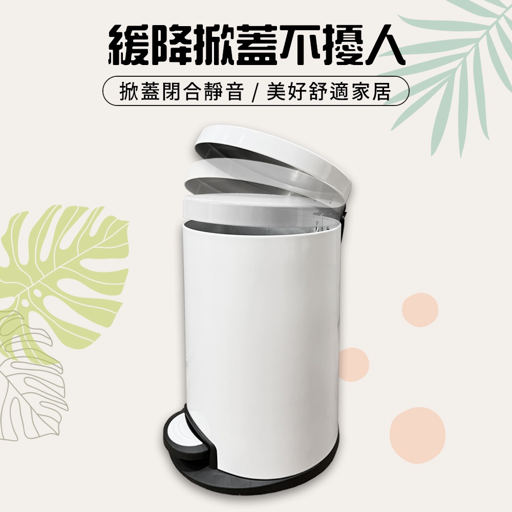 【AOTTO】12公升踩踏式緩降靜音不銹鋼垃圾桶(12L 腳踏垃圾桶 緩降 靜音)白色|黑色Trash & Recycling BinsAOTTO創意家居