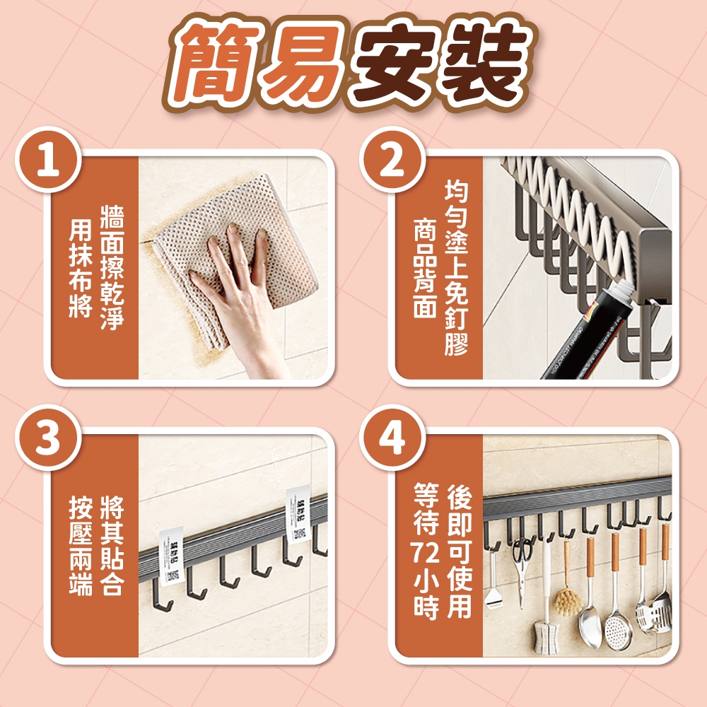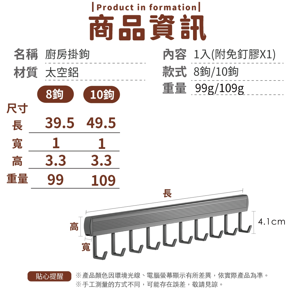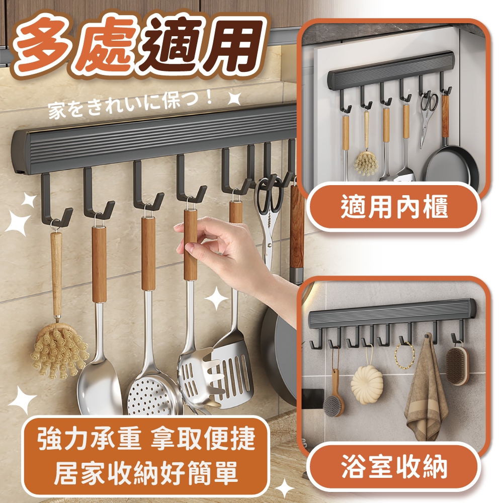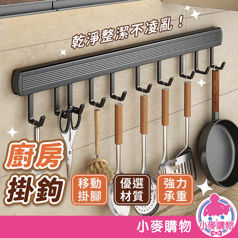 廚房掛鉤 廚房 廚具 掛鉤 排勾 免釘掛勾 免釘 免打孔 太空鋁掛鈎 多功能 掛架【小麥購物】【C143】8鉤|10鉤Hooks 小麥購物