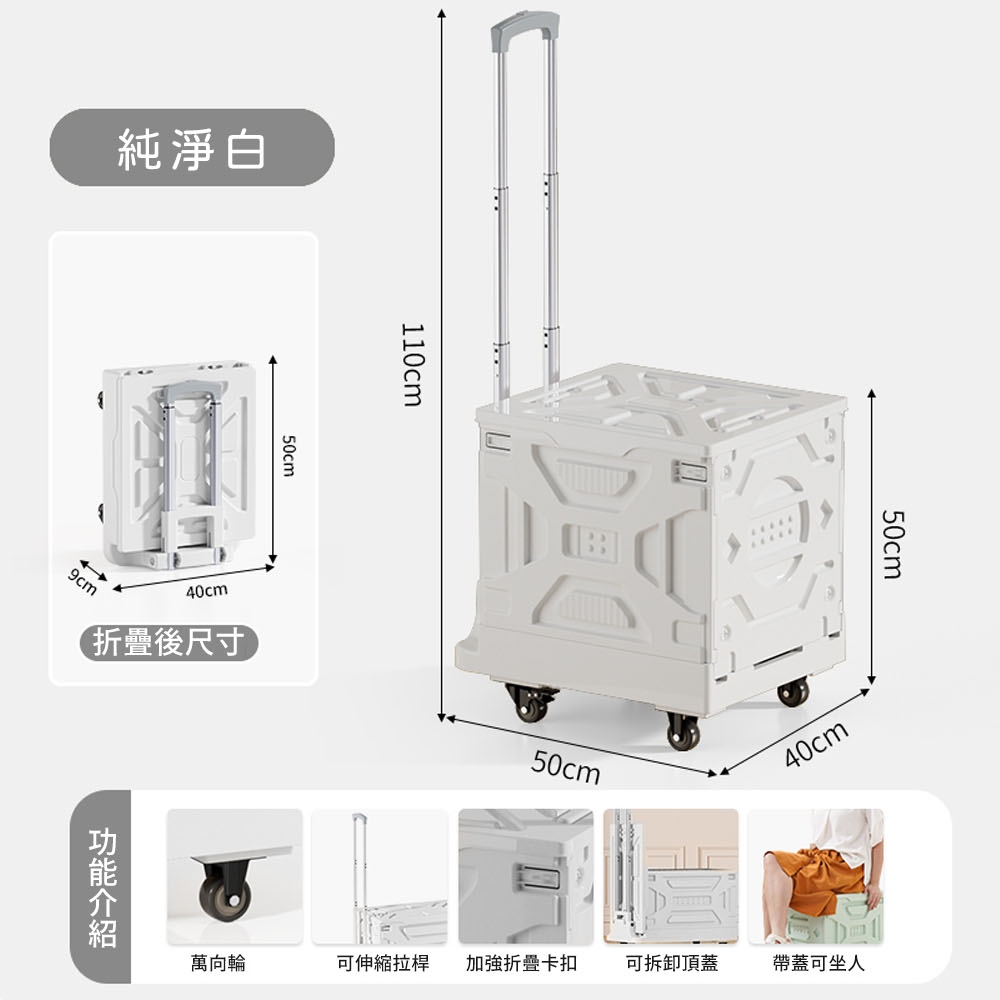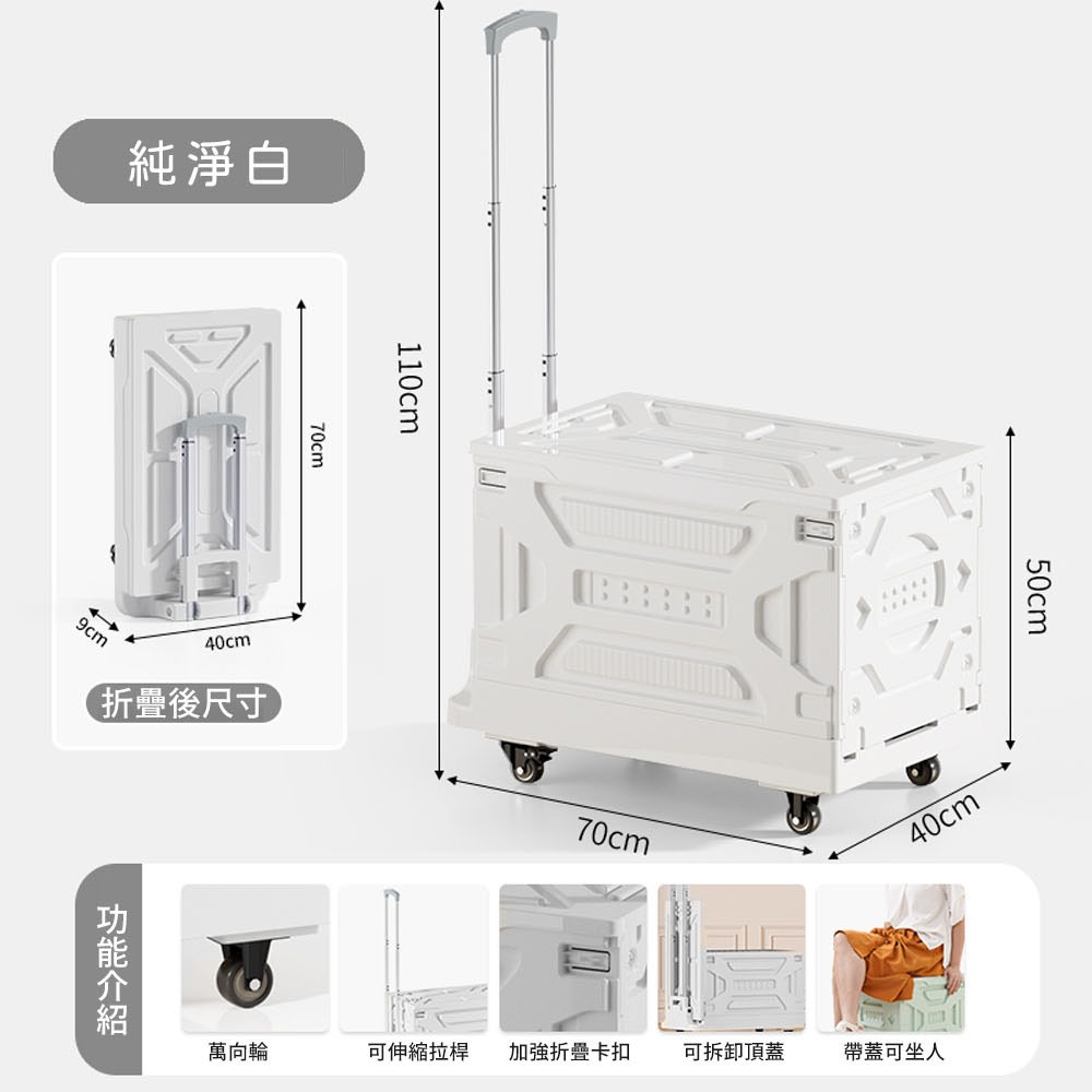 【AOTTO】多功能兩用收納折疊推車(平板車 手推車 手拉車 購物車)70L,純白色|70L,清新綠|90L,純白色|90L,清新綠TrolliesAOTTO創意家居
