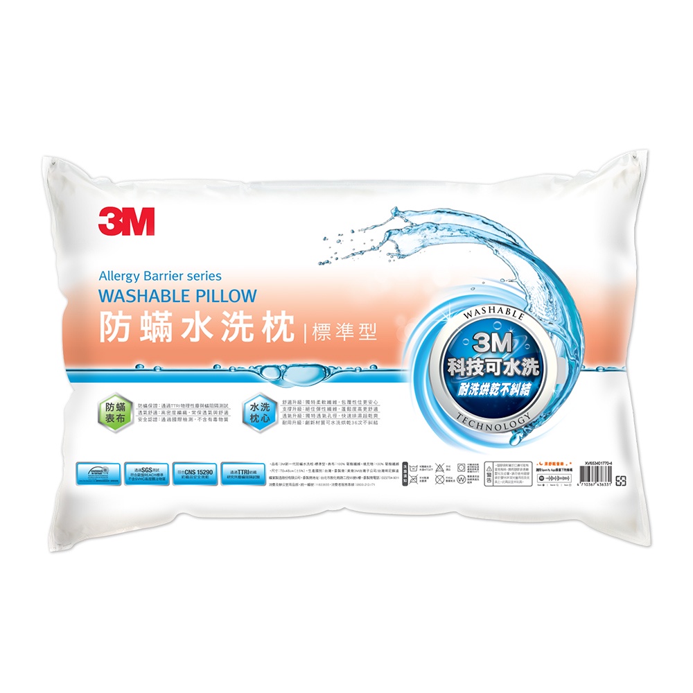 3M 新一代防螨水洗枕-標準型 可低溫烘乾1入|2入Pillows3M 授權官方旗艦館