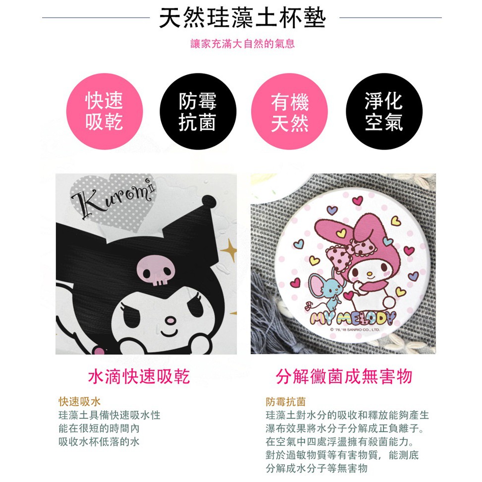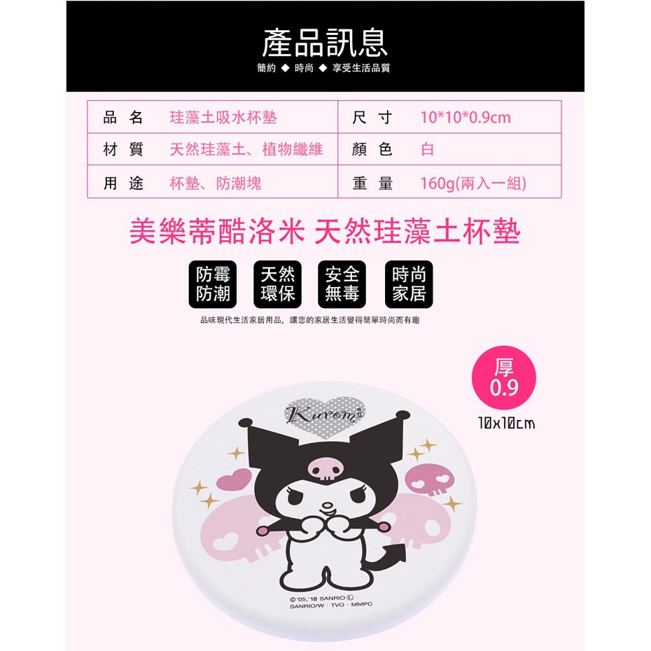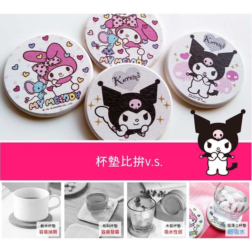 三麗鷗 Sanrio 美樂蒂&酷洛米 硬式珪藻土杯墊 硅藻土 防滑墊 吸水墊 【5ip8】KU0002美樂蒂親親款|美樂蒂好友款|庫洛米閃亮款|庫洛米骷髏頭款Placemats & Coasters5IP8居家生活館