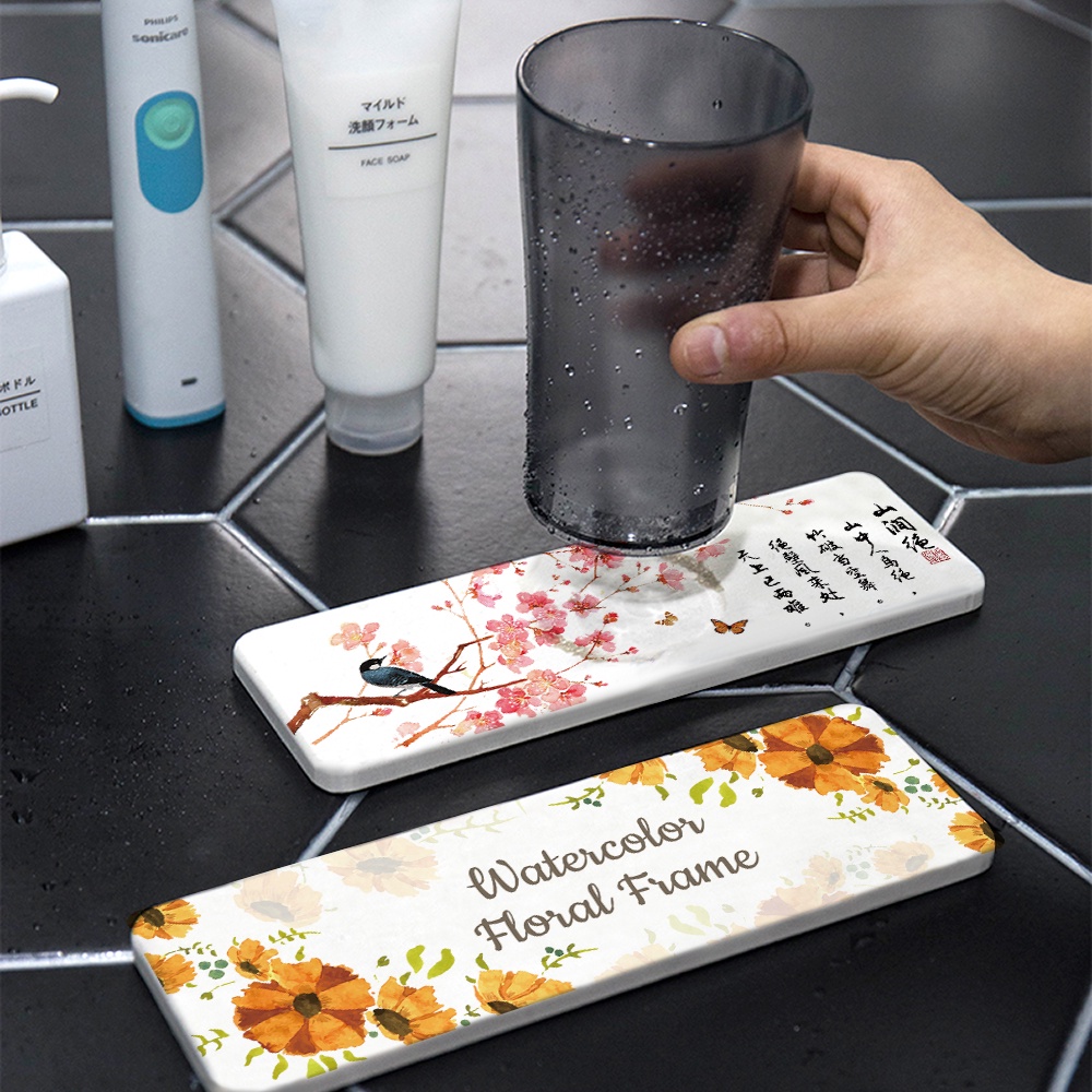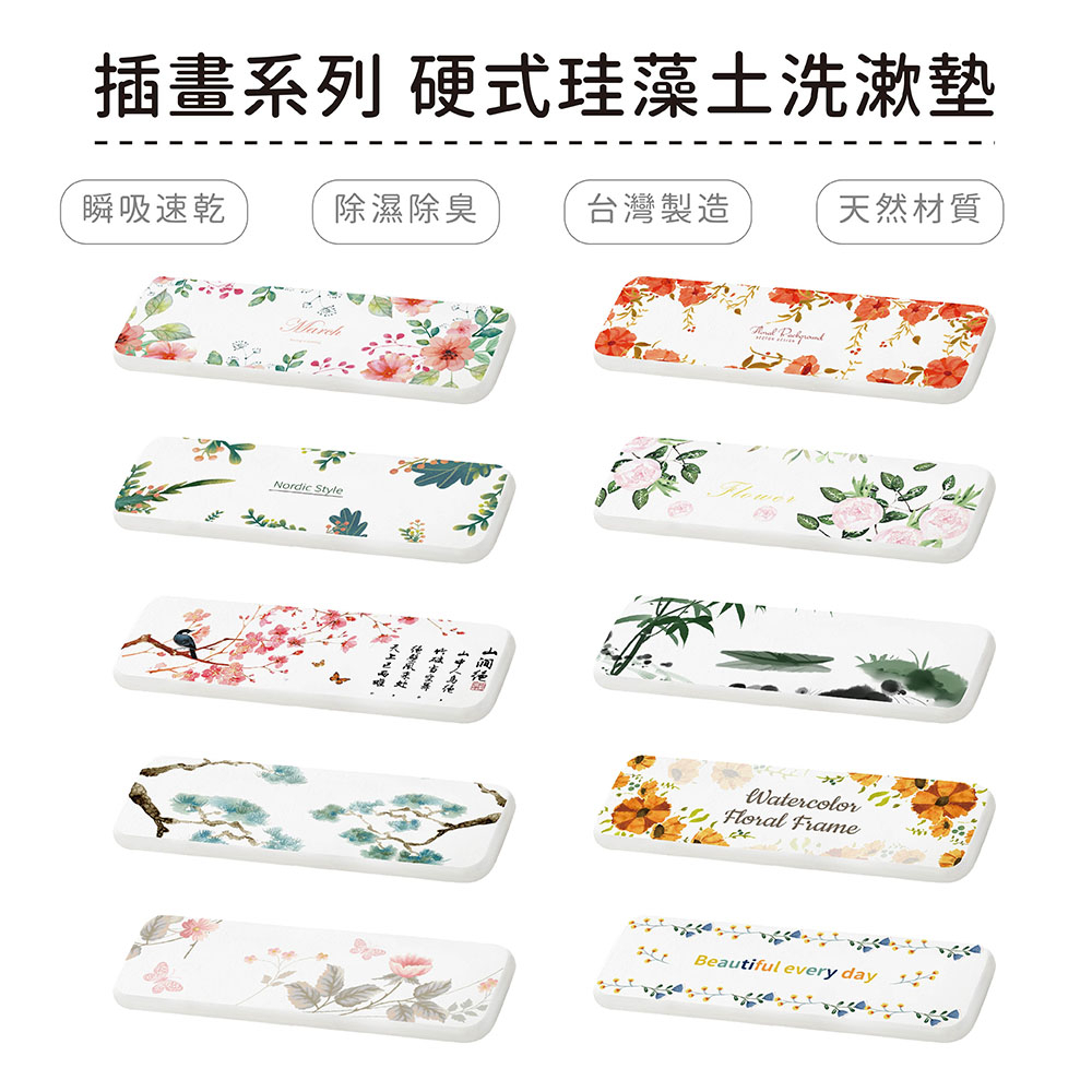 自創插畫系列 硬式珪藻土洗漱墊 吸水杯墊 牙刷架 SGS檢驗不含石綿 多種款式任選【5ip8】FM0340三月春花|紅花環繞|水墨風情|古風樹木|雛菊花圈|綠葉風情|粉紅玫瑰|詩情畫意|清新花卉|黃藍小花Placemats & Coasters5IP8居家生活館