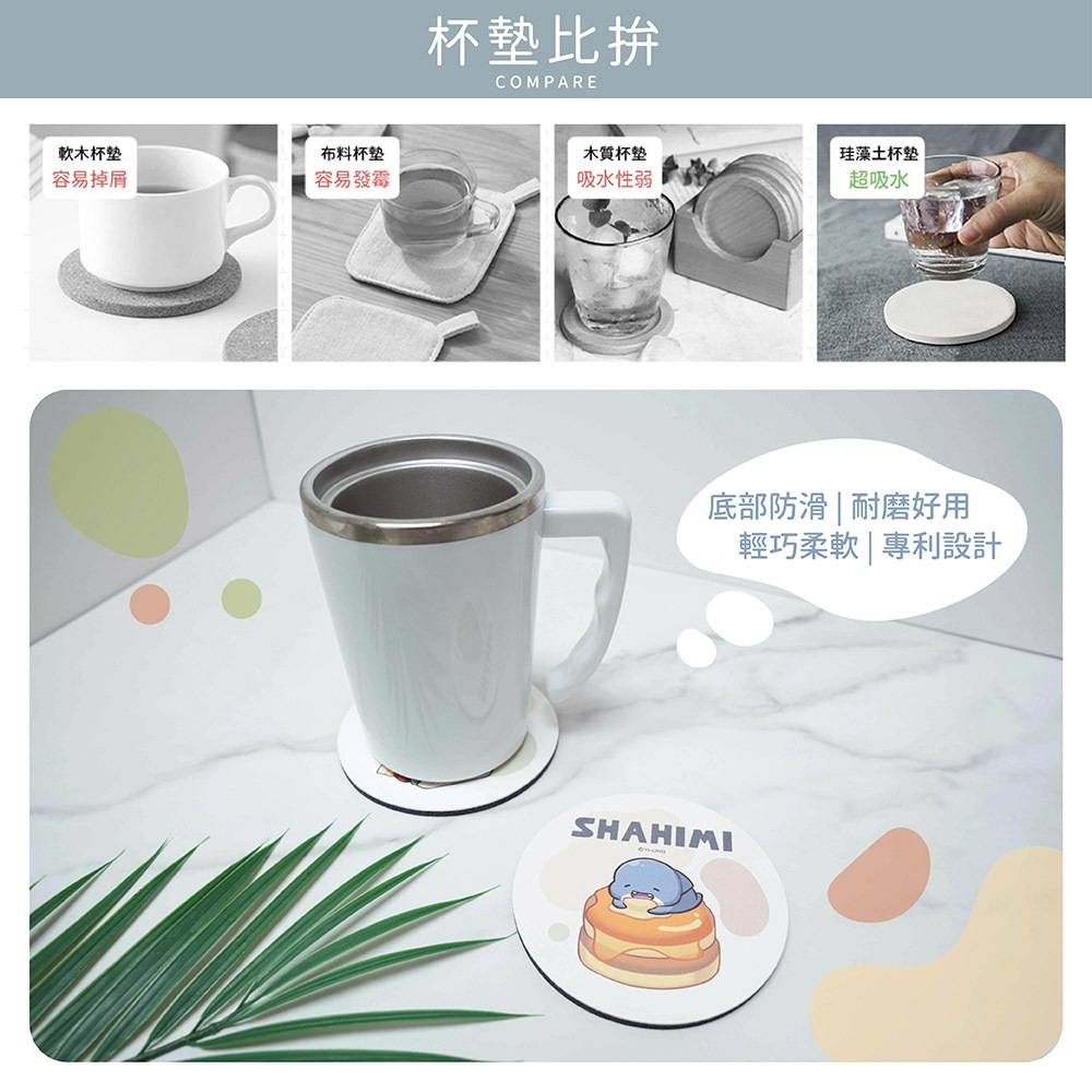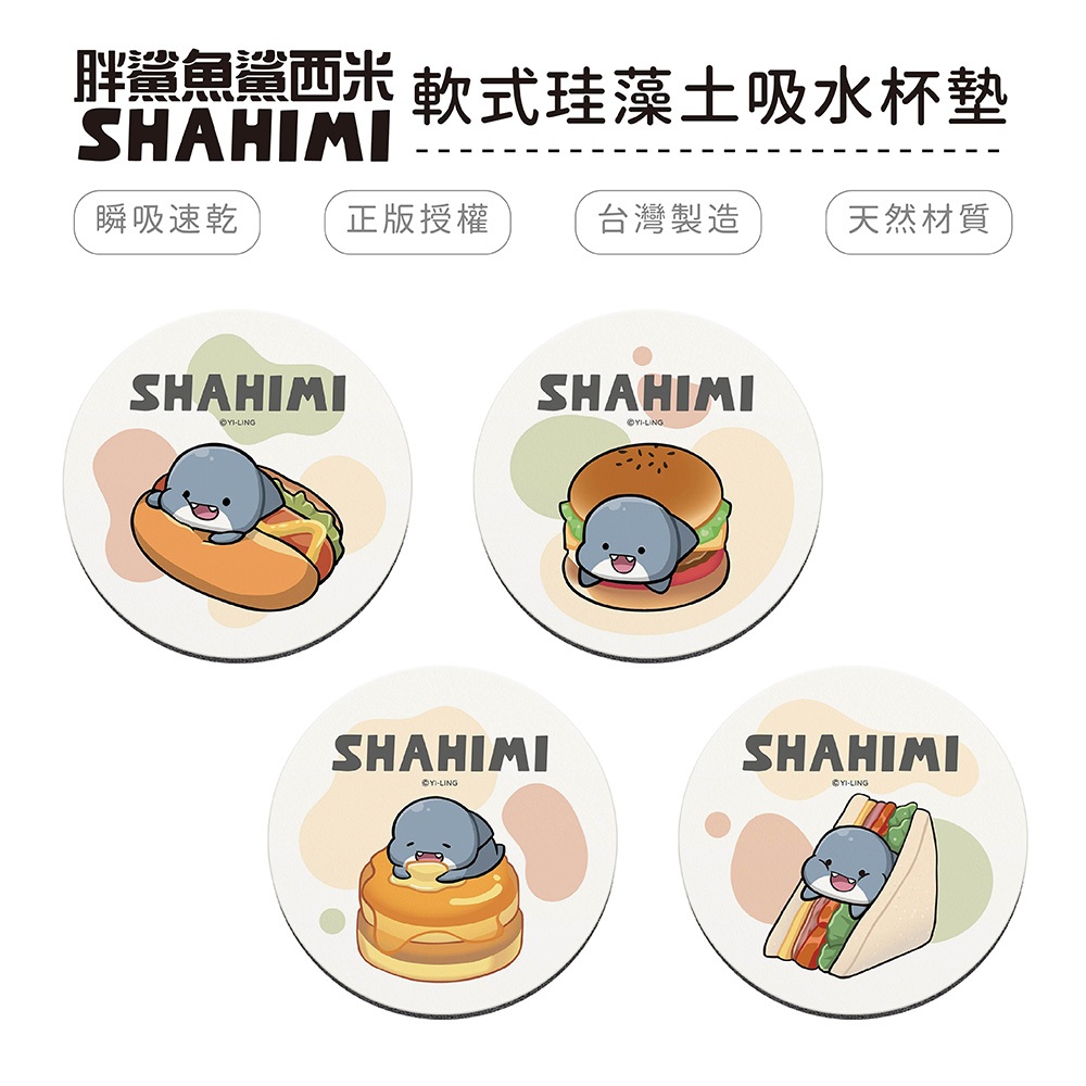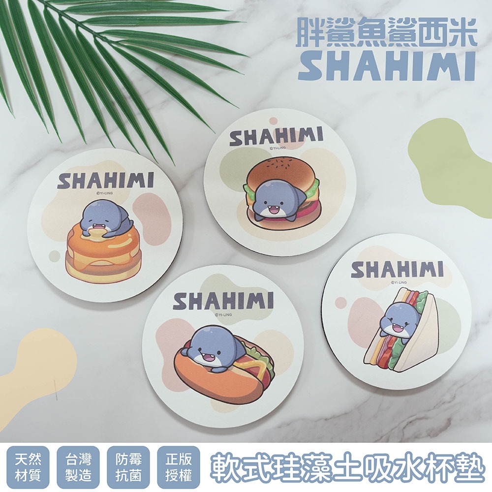 胖鯊魚鯊西米 餐餐系列 軟式珪藻土吸水杯墊 (2入組) 杯墊 防潮 硅藻土 防滑墊 吸水墊 隔熱墊 正版授權【5ip8】法式千層餐|美式飽堡餐Placemats & Coasters5IP8居家生活館