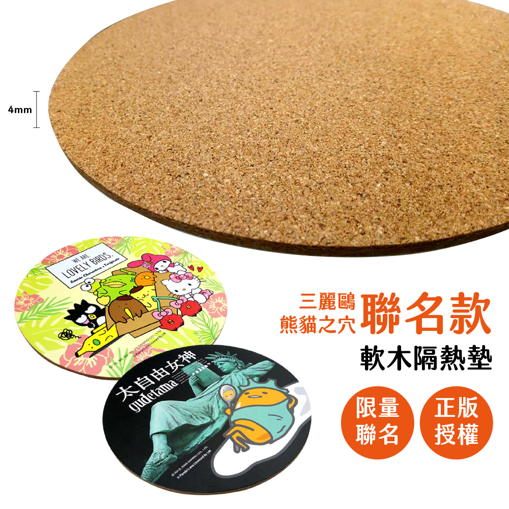 Sanrio 三麗鷗 戽斗聯名 軟木隔熱墊 餐墊【5IP8】 蛋黃哥/水果鳥大集合(綠)|太自由蛋黃哥(黑)Placemats & Coasters5IP8居家生活館