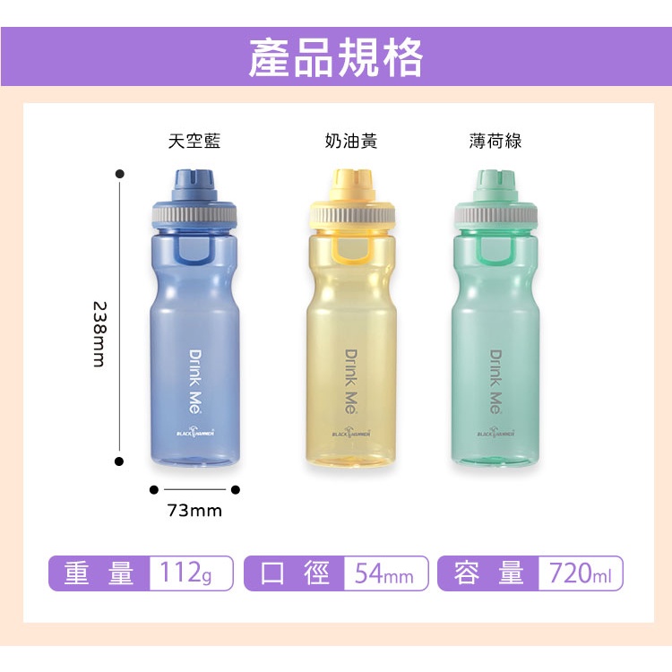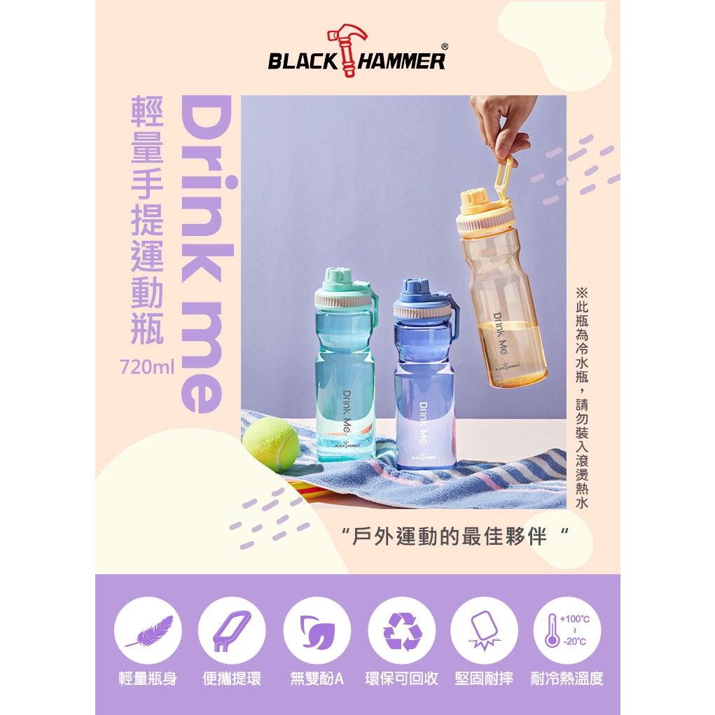 【Black HAMMER 官方直營】Drink Me 運動冷水瓶720ml/便攜提環薄荷綠Water Bottles & AccessoriesBlack Hammer|美國康寧|掌廚|IdEa LifE餐廚