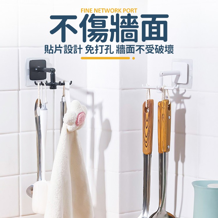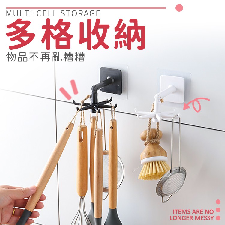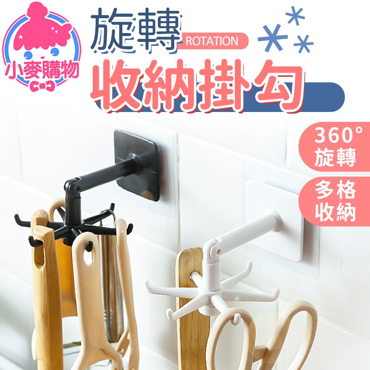 旋轉收納掛勾【小麥購物】24H出貨台灣現貨【Y745】免釘 掛勾 六爪掛勾 旋轉掛勾 廚房掛勾 浴室掛勾 收納 勾黑色|白色Hooks 小麥購物