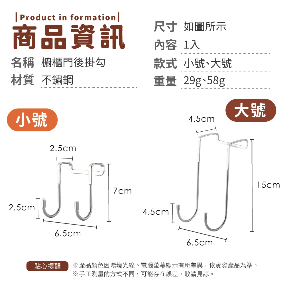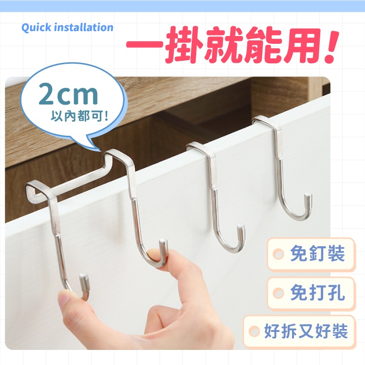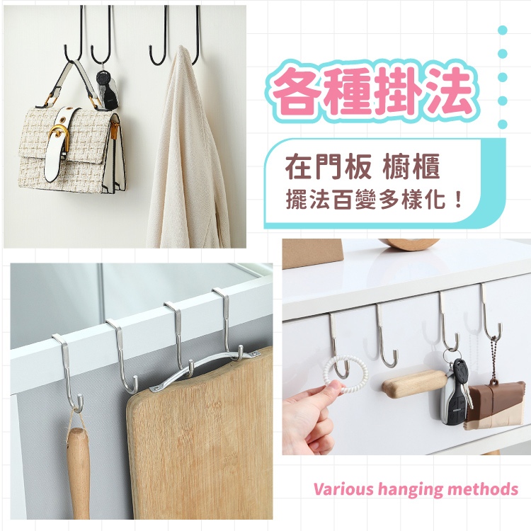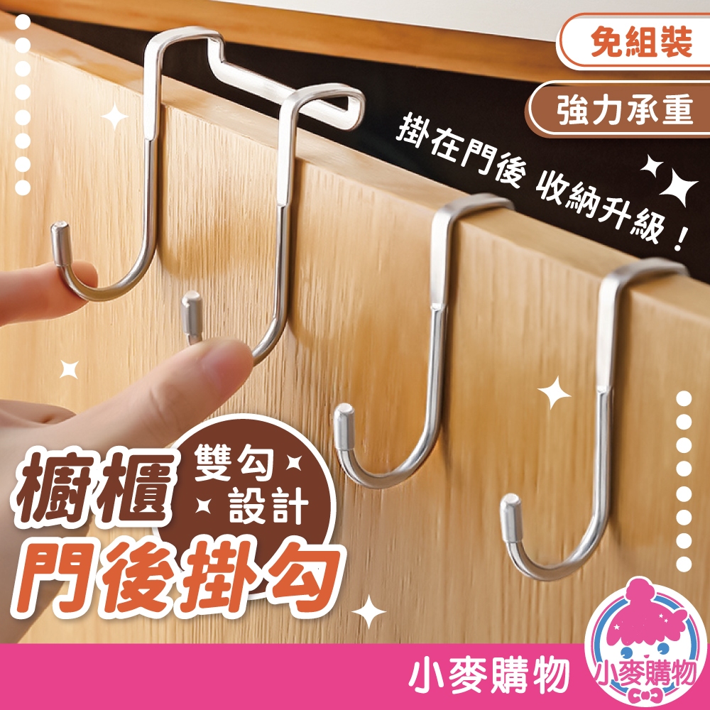 櫥櫃門後掛勾 掛勾 免釘掛勾 門後掛鈎 掛鈎 門後掛架置物 免打孔不鏽鋼雙鈎 S型掛鉤【小麥購物】【Y955】小號|大號Hooks 小麥購物