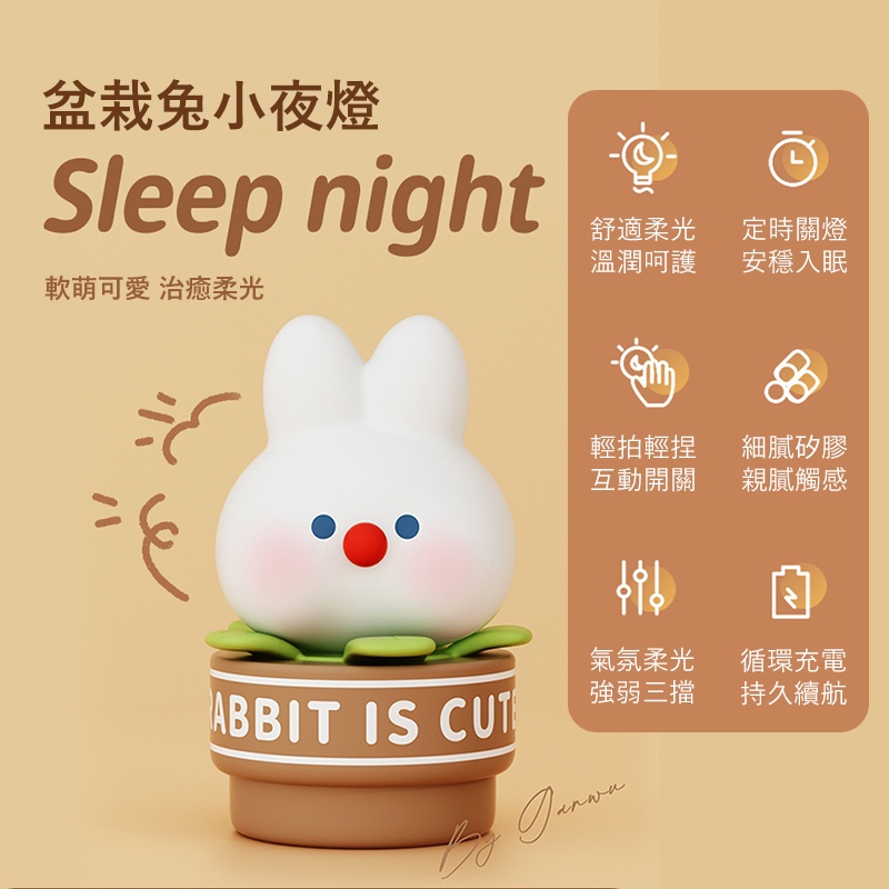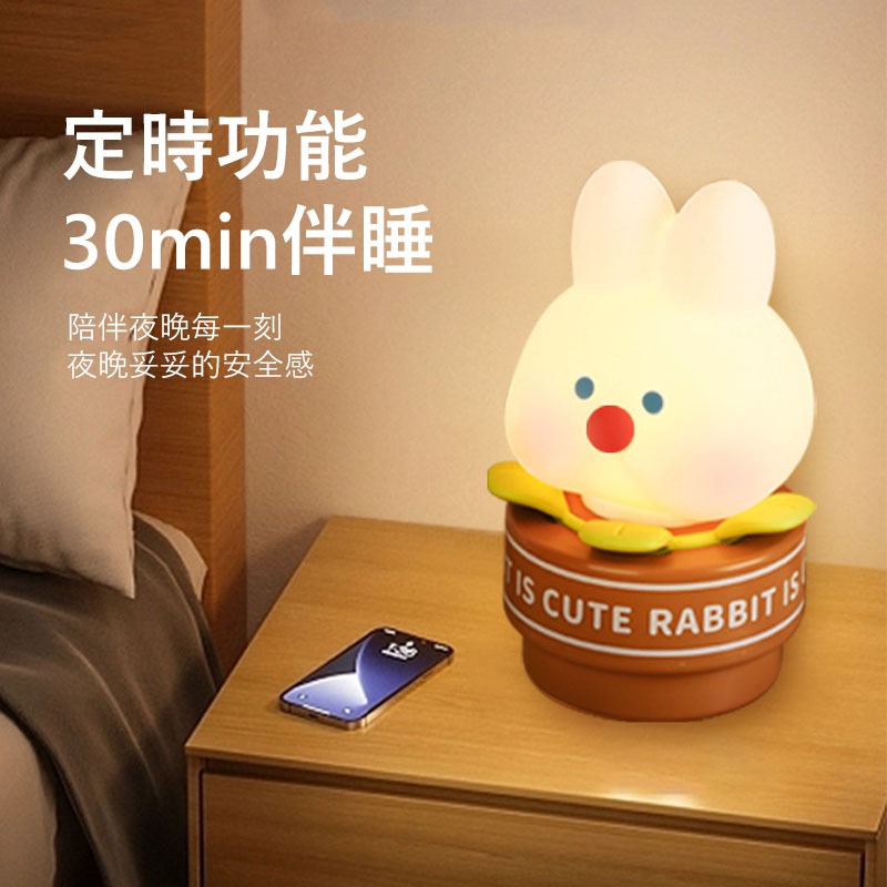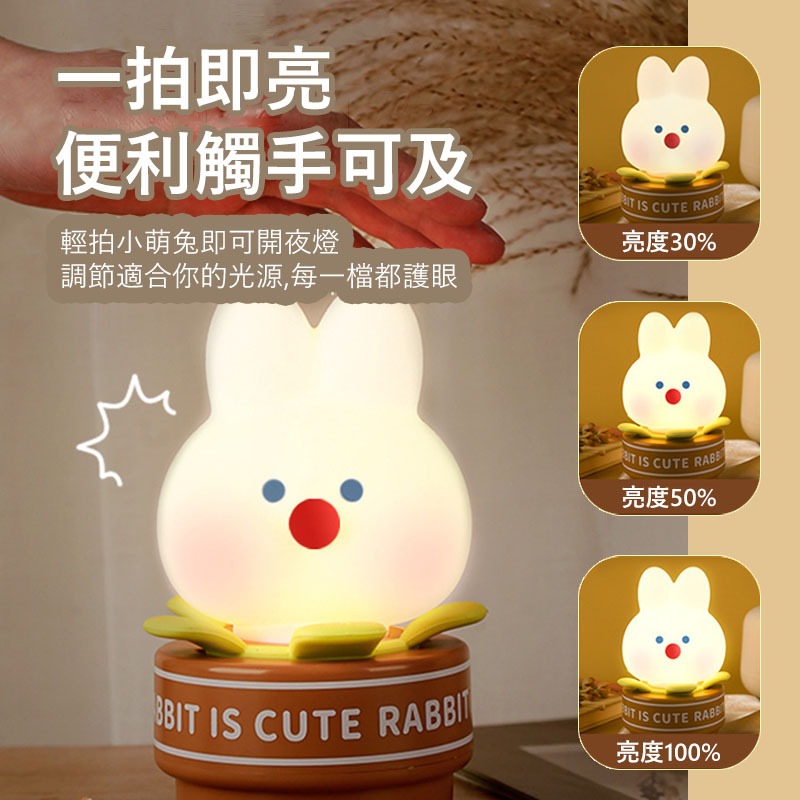【A-MORE LiFE】盆栽兔小夜燈 三檔調光 定時關燈 夜燈 拍拍燈 宿舍燈 床頭燈 媽媽燈 餵奶燈 禮物 交換禮物盆栽兔小夜燈|【包裝NG】盆栽兔小夜燈A-More創意
