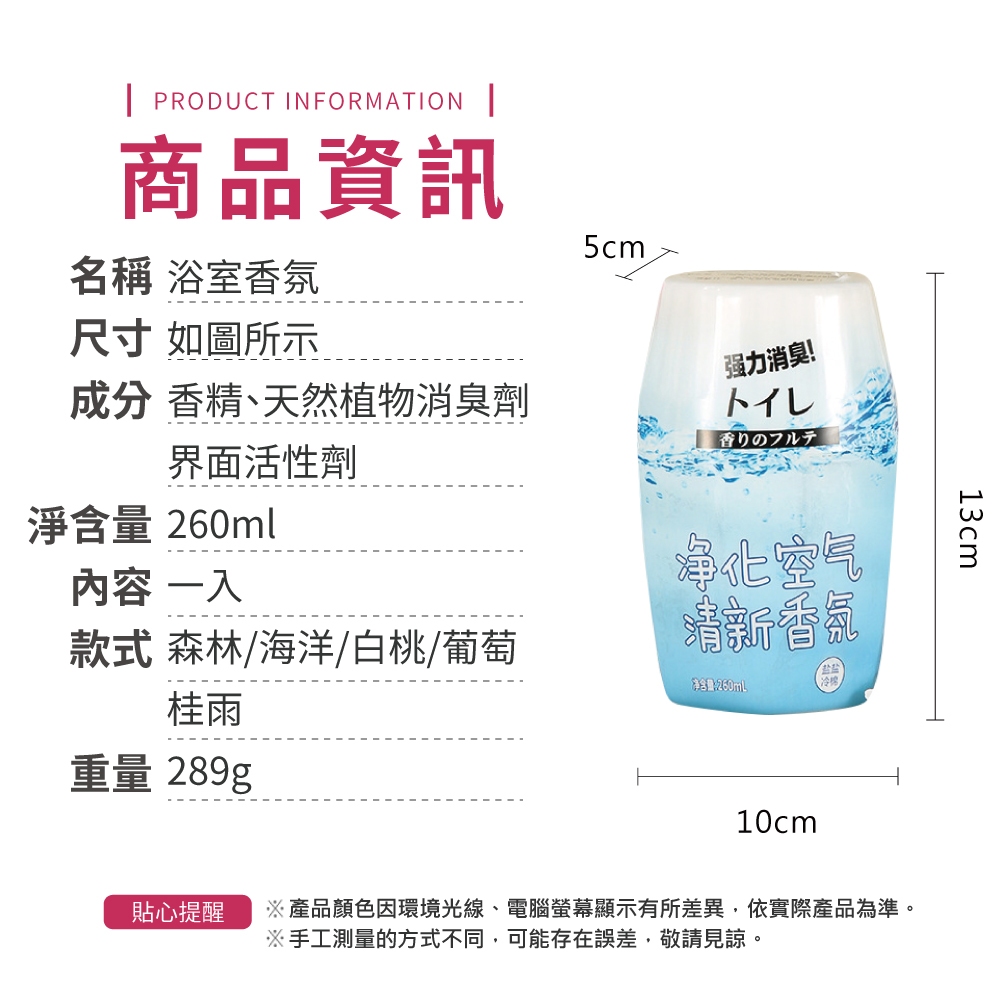 浴室香氛 260ml 空氣清新劑 居家香薰 室內家用 廁所除臭 芳香劑 廁所淨味 香氛 擴香【小麥購物】【Y741】森林|白桃|桂雨|葡萄|海洋Air Fresheners & Home Fragrance 小麥購物