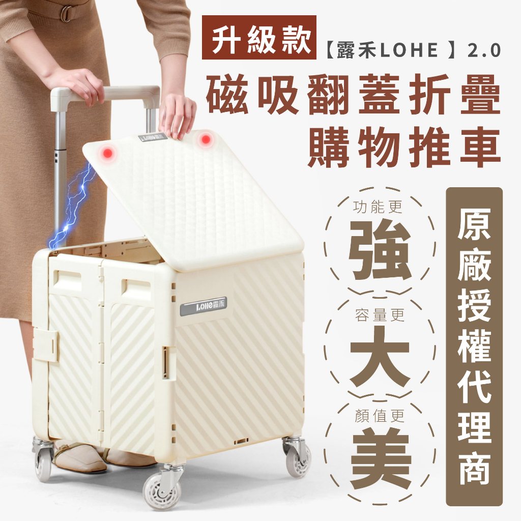 升級款現貨【露禾LOHE 2.0 】磁吸翻蓋折疊購物推車 /露營推車 /折疊推車LOHE2.0經典款 米蘭白75L金屬輪|LOHE2.0經典款 櫻花粉75L金屬輪TrolliesAmodas旗艦店