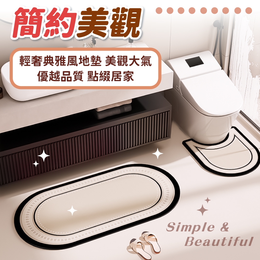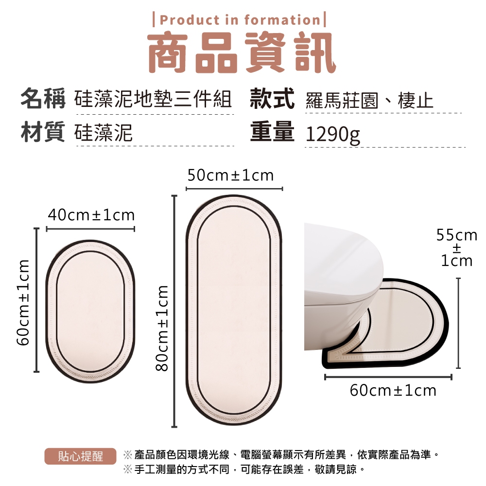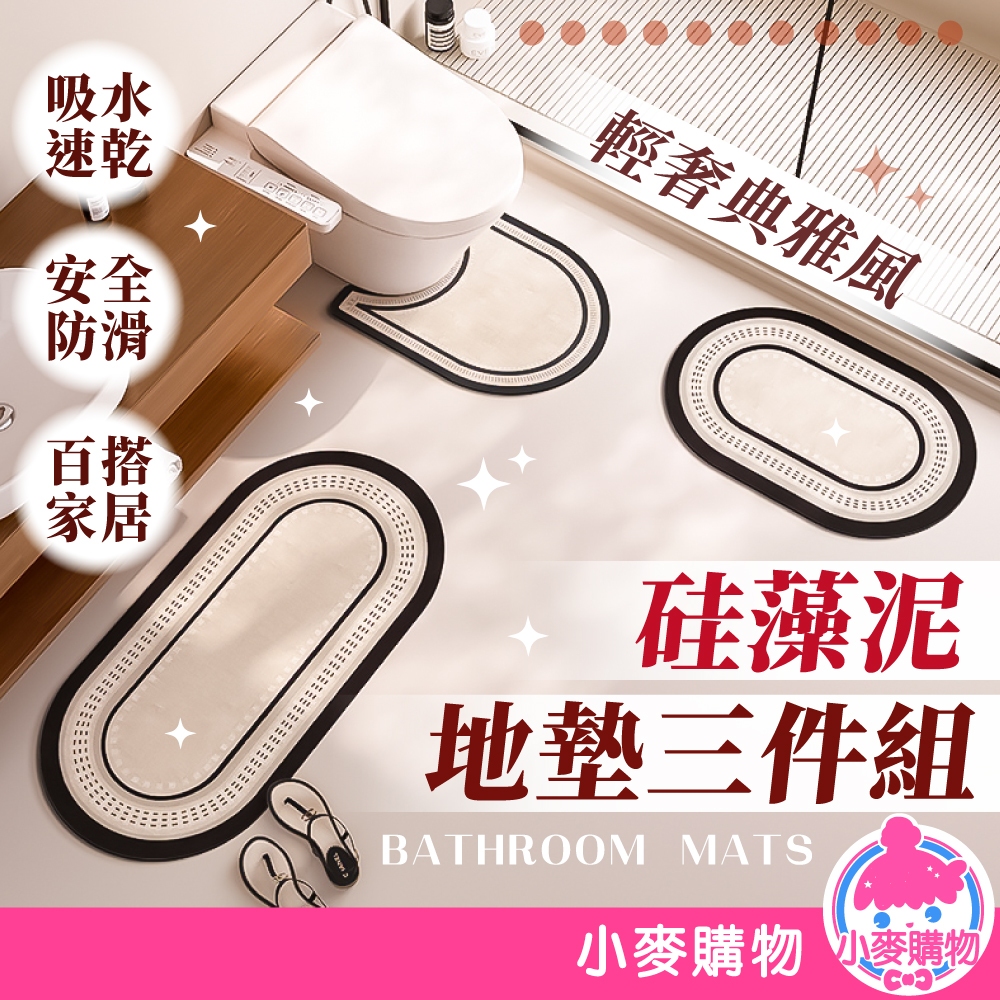 硅藻泥地墊三件組 輕奢風 矽藻土地墊 吸水地墊 防滑地墊 腳踏墊 防滑墊 地墊 地毯 浴室【小麥購物】【C620】羅馬莊園|棲止Floor Mats 小麥購物