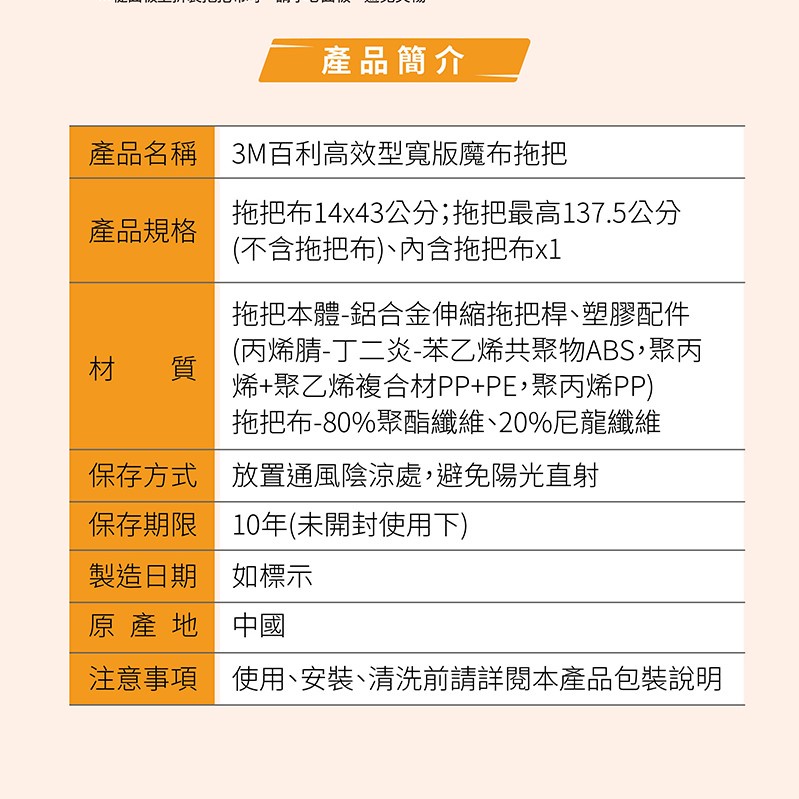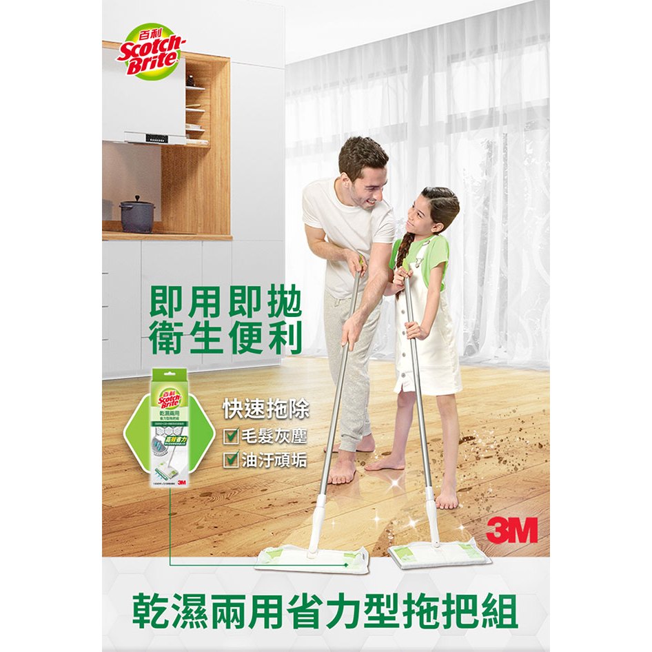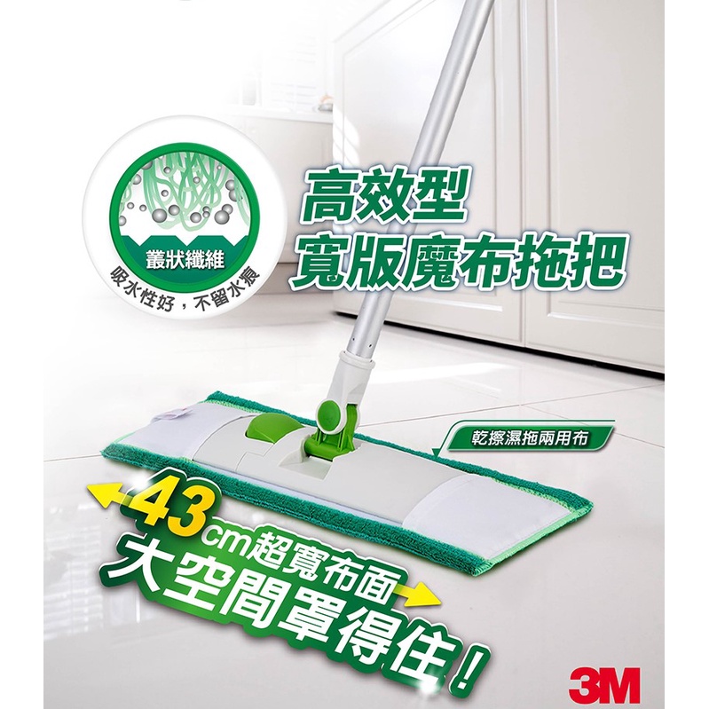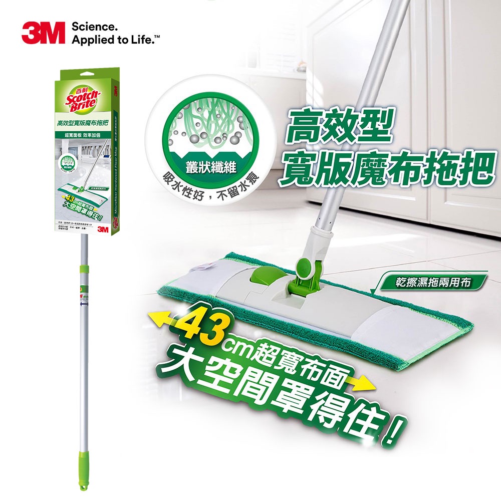 3M 百利 高效型寬版魔布拖把1桿1布 魔布 布拖把拖把一入Mops3M 授權官方旗艦館