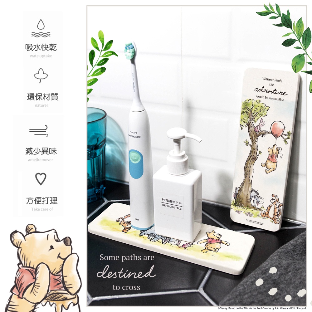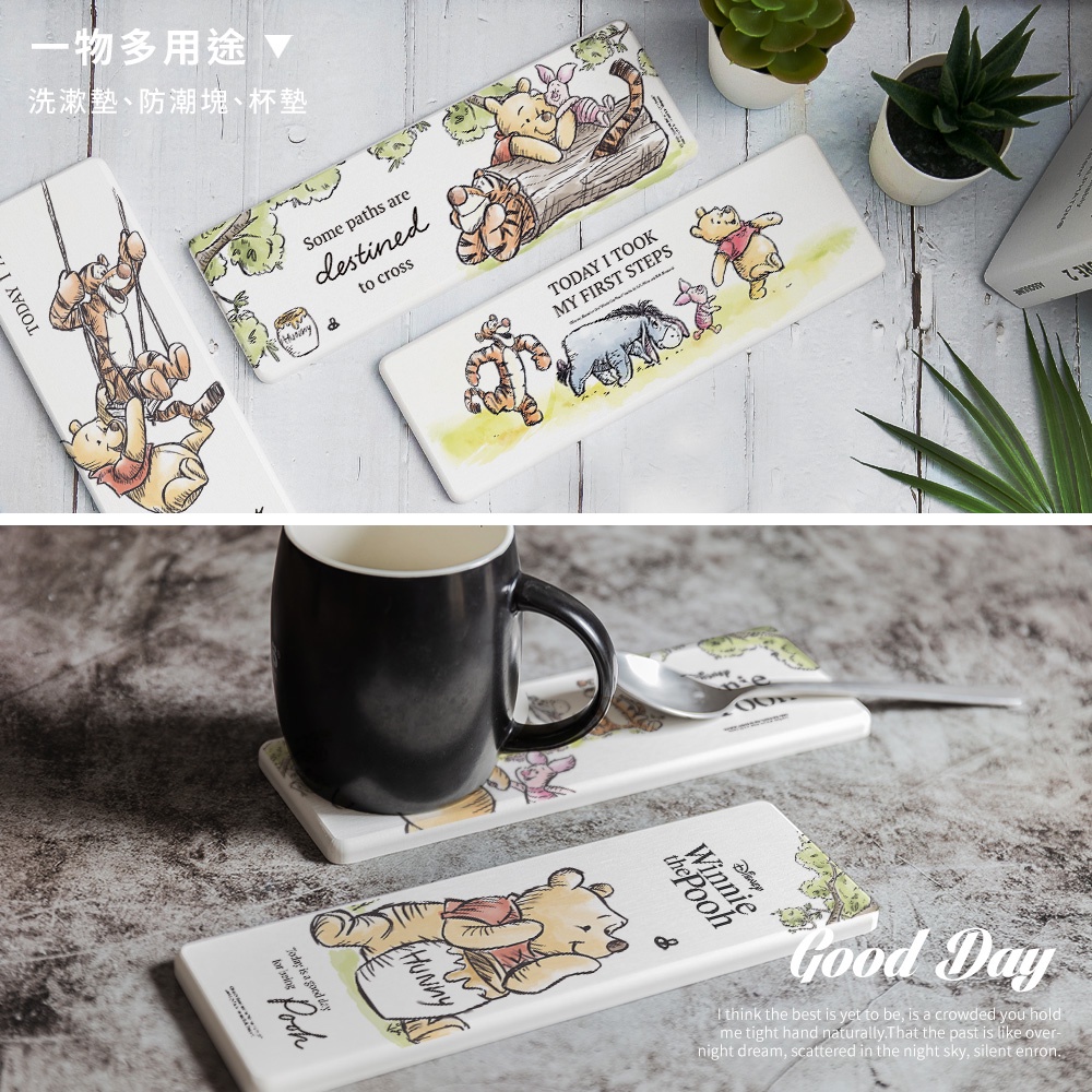 迪士尼 Disney 小熊維尼 硬式珪藻土洗漱墊 24×8 防潮 杯墊 瀝水 硅藻土牙刷架【5ip8】DN0315木頭款|悠閒時光|日常足跡|氣球朋友|盪鞦韆|蜂蜜罐Placemats & Coasters5IP8居家生活館