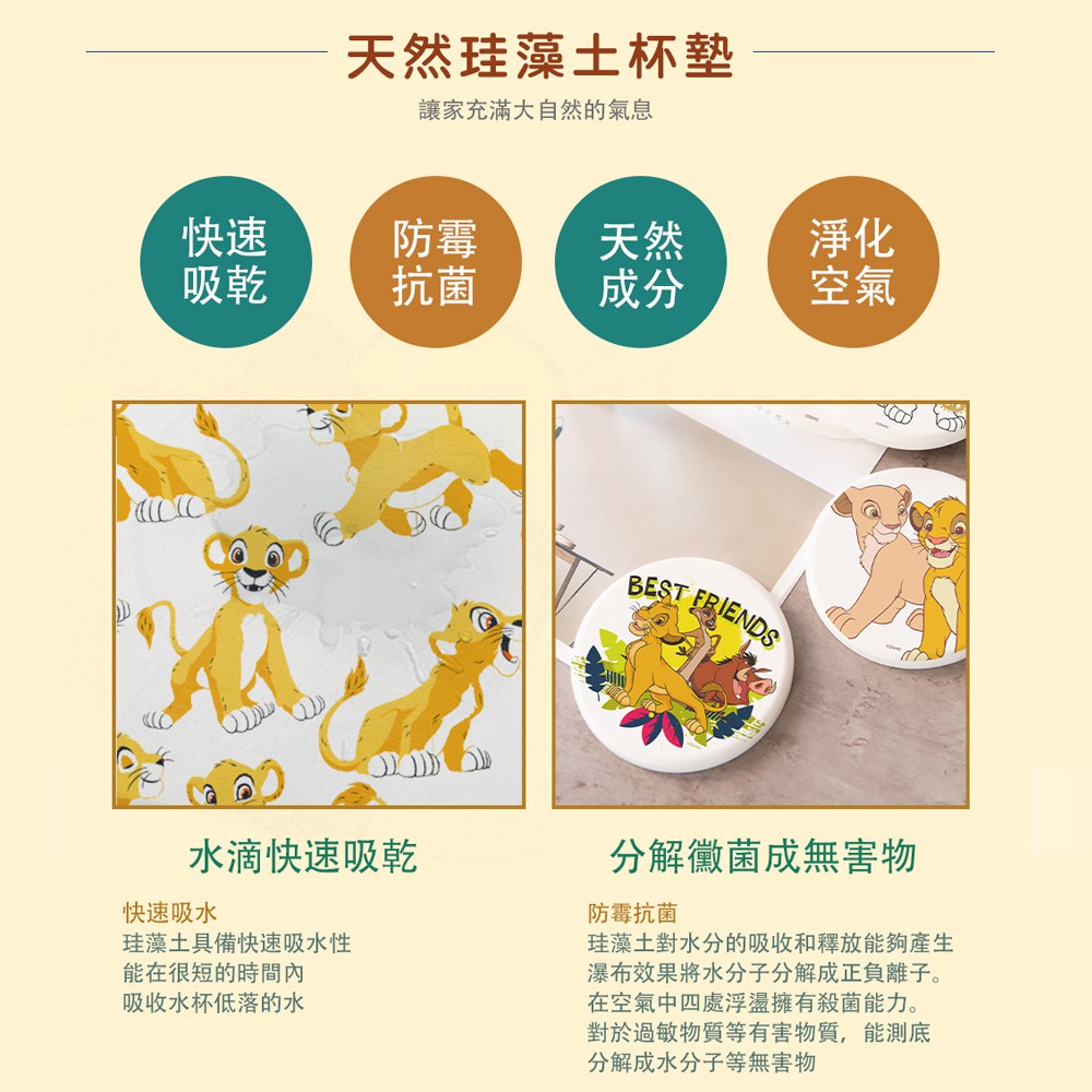迪士尼 Disney 獅子王 硬式珪藻土吸水杯墊 (2入組) 辛巴 澎澎 丁滿 硅藻土 防滑墊 吸水墊 【5ip8】圓(94辛巴)|圓(小獅子王)|圓(非洲草原)|圓(辛巴&娜娜)|方(插畫彭彭&丁滿)|方(插畫三人組)|方(好奇辛巴)|方(幾何彭彭&丁滿)|方(太陽辛巴)Placemats & Coasters5IP8居家生活館