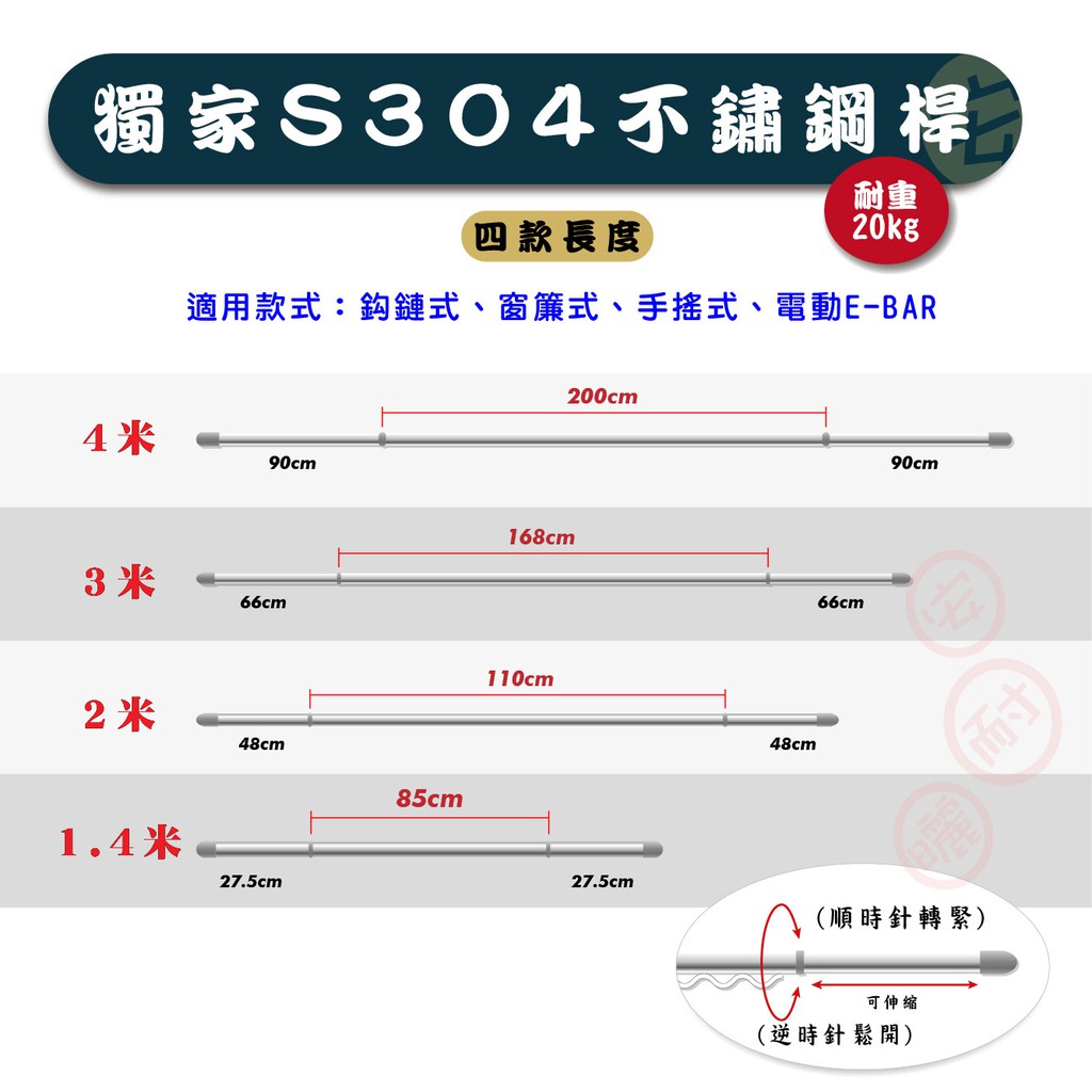 曬衣桿:純S304不鏽鋼【獨家伸縮桿】(下方無波浪防風條)ANASA安耐曬3公尺(170~300CM)|4公尺(220~400CM)|2公尺(120~200CM)Hangers & PegsANASA安耐曬-升降曬衣架