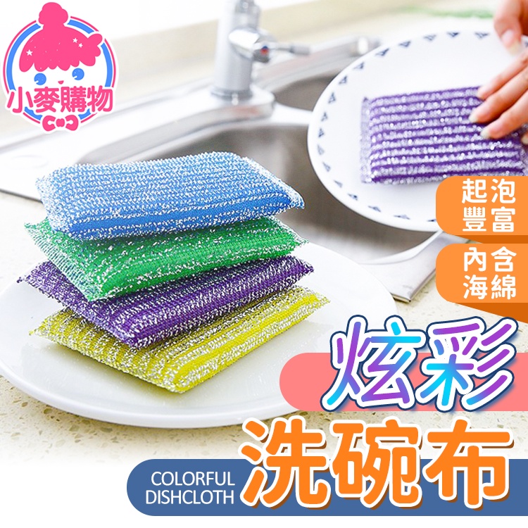 金蔥菜瓜布 菜瓜布 洗碗 洗碗海綿 海綿擦 洗碗布 洗碗刷 刷碗 洗鍋 廚房 清潔 炫彩洗碗布【小麥購物】【Y480】金蔥菜瓜布|顏色隨機|一入Sponges & Scouring Pads 小麥購物