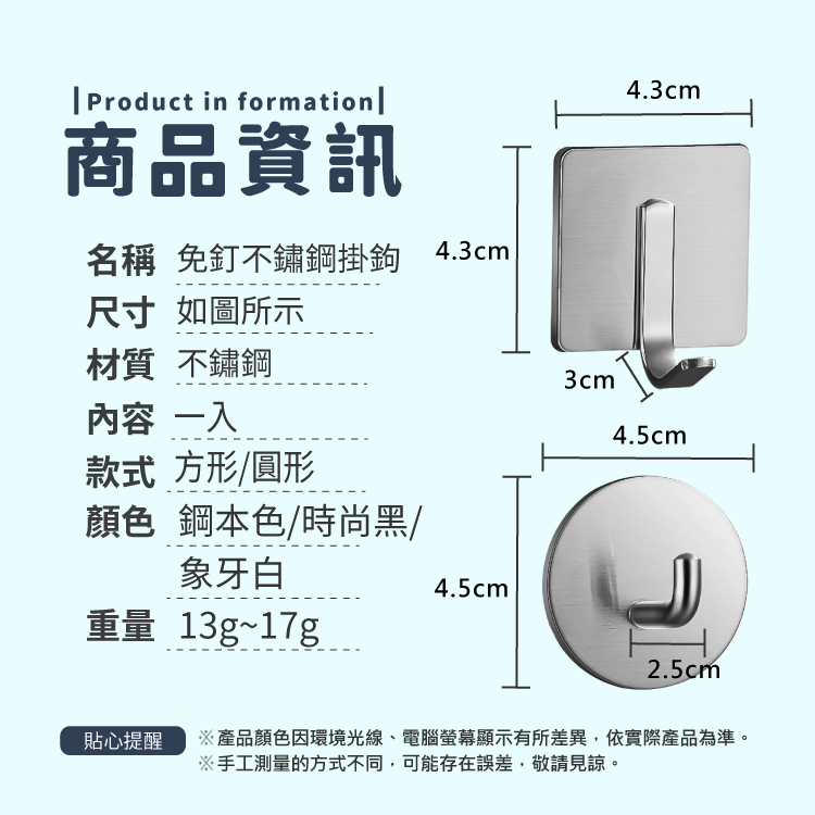 掛勾 收納 收納掛 免釘 掛鉤 置物 免打孔【小麥購物】24H出貨 不鏽鋼掛勾 衣物收納 小物收納 掛架【Y862】象牙白|方形|鋼本色|圓形|時尚黑|圓形|象牙白|圓形|鋼本色|方形|時尚黑|方形Hooks 小麥購物