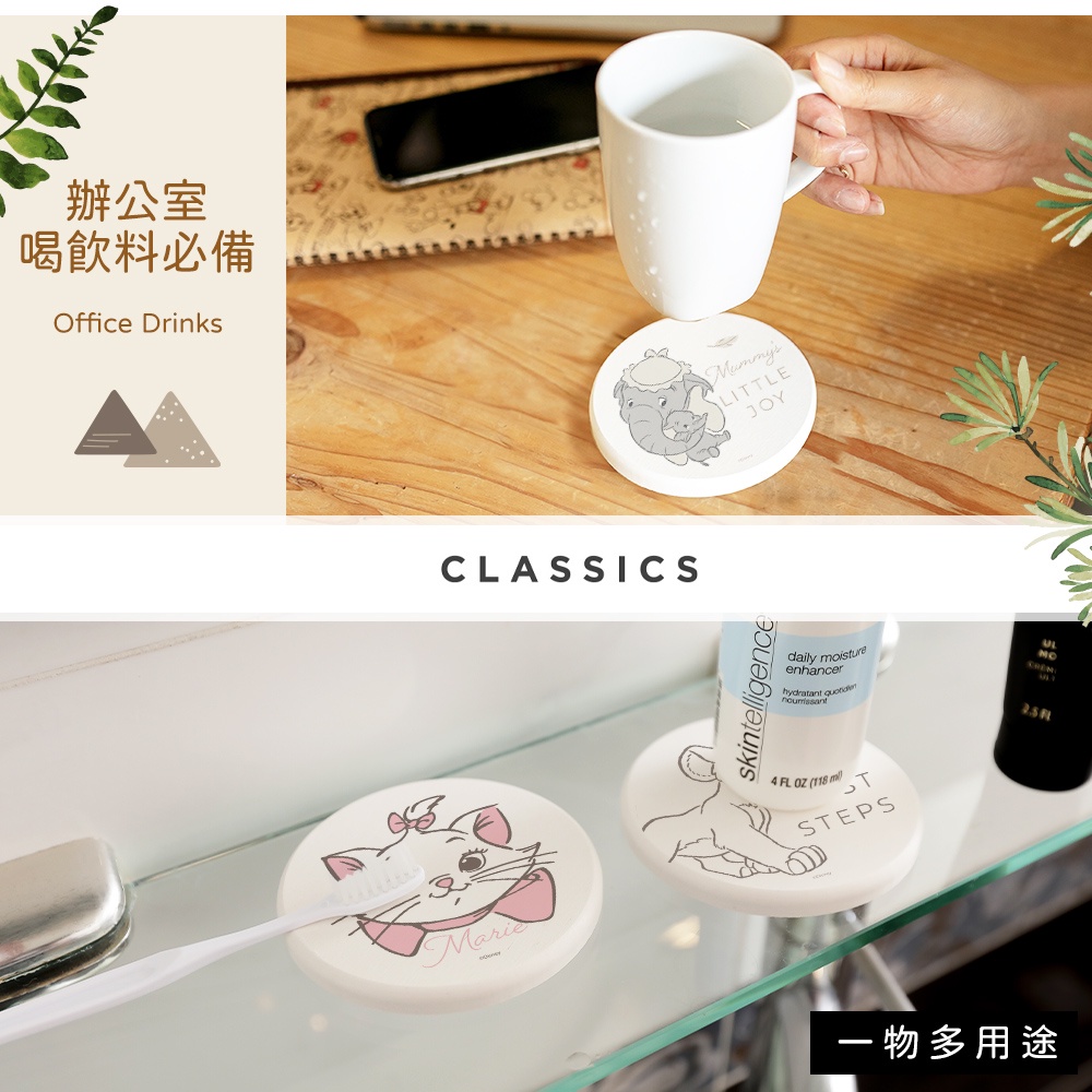 迪士尼 Disney 動物系列 硬式珪藻土杯墊 (2入組) 小鹿斑比 瑪麗貓 小飛象 獅子王【5ip8】DN0321寶寶小飛象|大頭辛巴|午睡斑比|大頭瑪麗貓Placemats & Coasters5IP8居家生活館