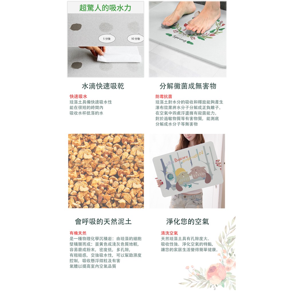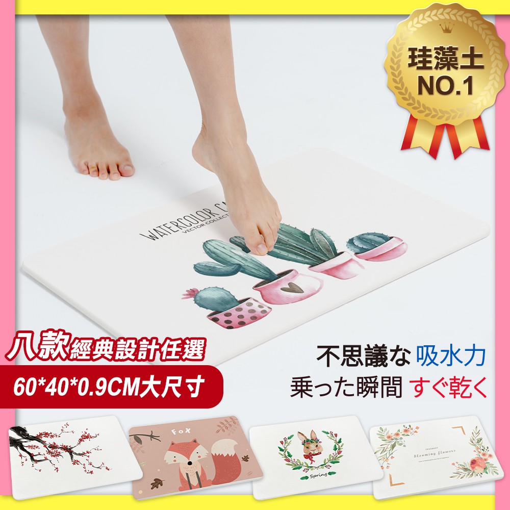 北歐文青風 台灣製 硬式珪藻土地墊 60x40x0.9 硅藻土/腳踏墊/防潮/矽藻土/SGS檢驗【5ip8】FM0178花圈兔兔|花卉盛開|插畫狐狸|六朵紅花|森林朋友|快樂氣球|粉紅仙人掌|梅花Carpets & Rugs5IP8居家生活館