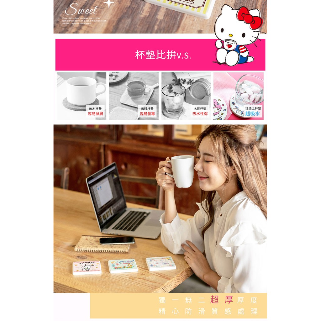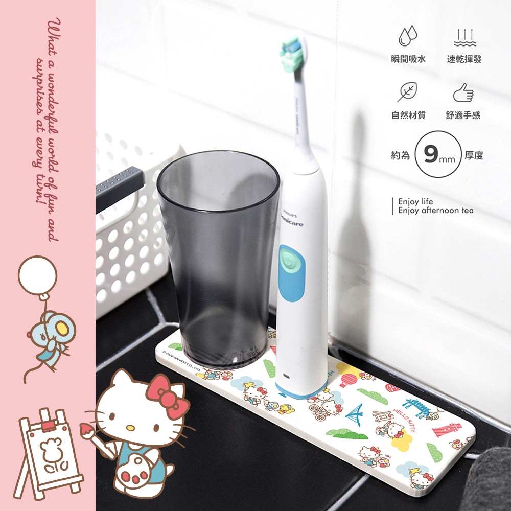 三麗鷗 Sanrio 硬式珪藻土洗漱墊 24*8*0.9 防潮/杯墊/硅藻土/牙刷架/HELLO KITTY【5ip8】單車遊|cheese|景點|粉嫩|歡樂Placemats & Coasters5IP8居家生活館