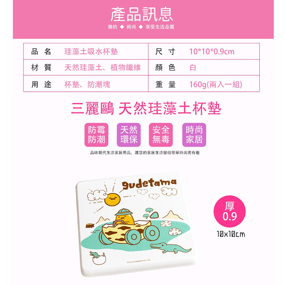 三麗鷗 Sanrio 硬式珪藻土吸水杯墊 (2入組) 蛋黃哥 大眼蛙 帕恰狗 【5ip8】KR0006大眼蛙(點點款)|帕恰狗珪(冰淇淋款)|蛋黃哥(露營款)Placemats & Coasters5IP8居家生活館