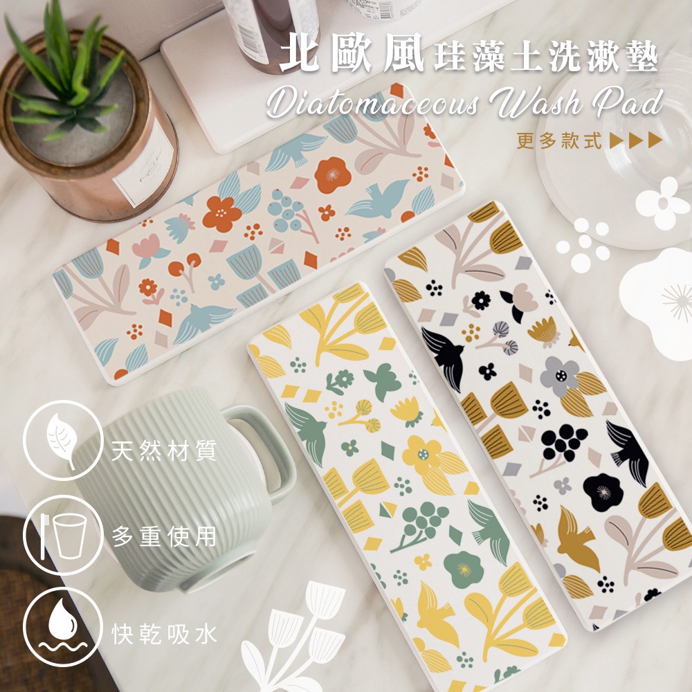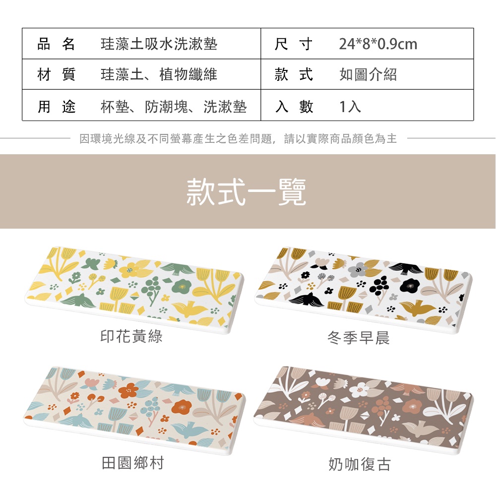 自創 北歐風系列 硬式珪藻土超吸水洗漱墊 24x8x0.9 SGS檢驗不含石綿 多種款式任選【5ip8】FM4083冬季早晨|奶咖復古|田園鄉村|印花黃綠Placemats & Coasters5IP8居家生活館