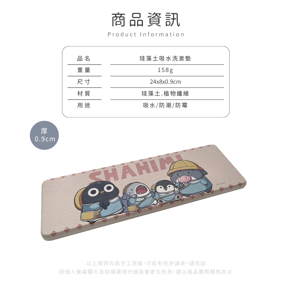 胖鯊魚鯊西米 鯊魚家族 硬式珪藻土洗漱墊 24×8 洗漱墊 防潮 杯墊 硅藻土 浴室收納 牙刷架 正版授權【5ip8】橡膠鯊|蓋棉被|冰淇淋|小朋友Toothbrush Holders & Toothpaste Dispensers5IP8居家生活館