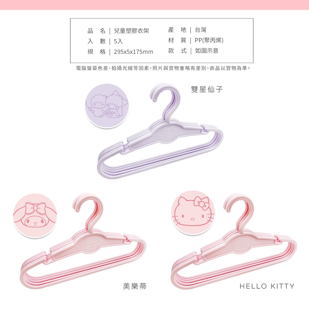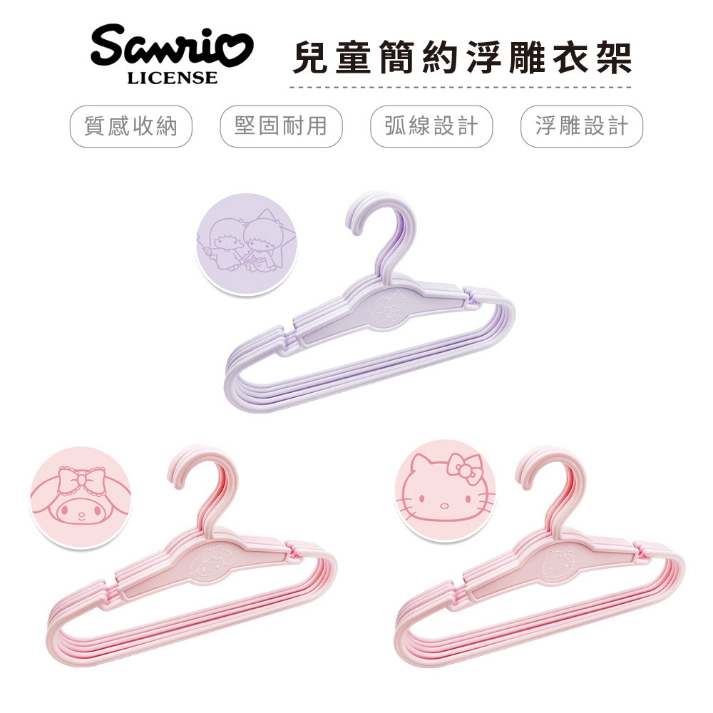 三麗鷗 Sanrio 簡約浮雕衣架 5入組 台灣製造 正版授權 KITTY 凱蒂貓 美樂蒂 雙子星【5ip8】HELLO KITTY|雙星仙子|美樂蒂Hangers & Pegs5IP8居家生活館