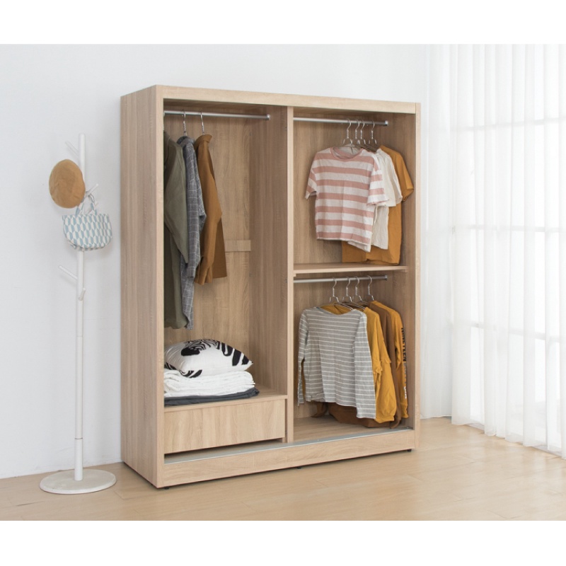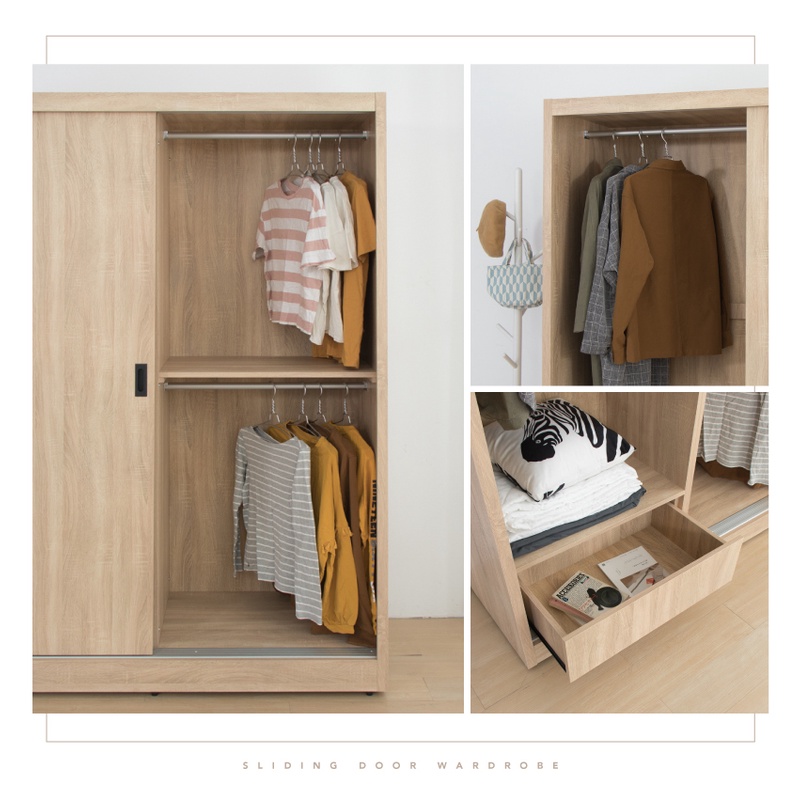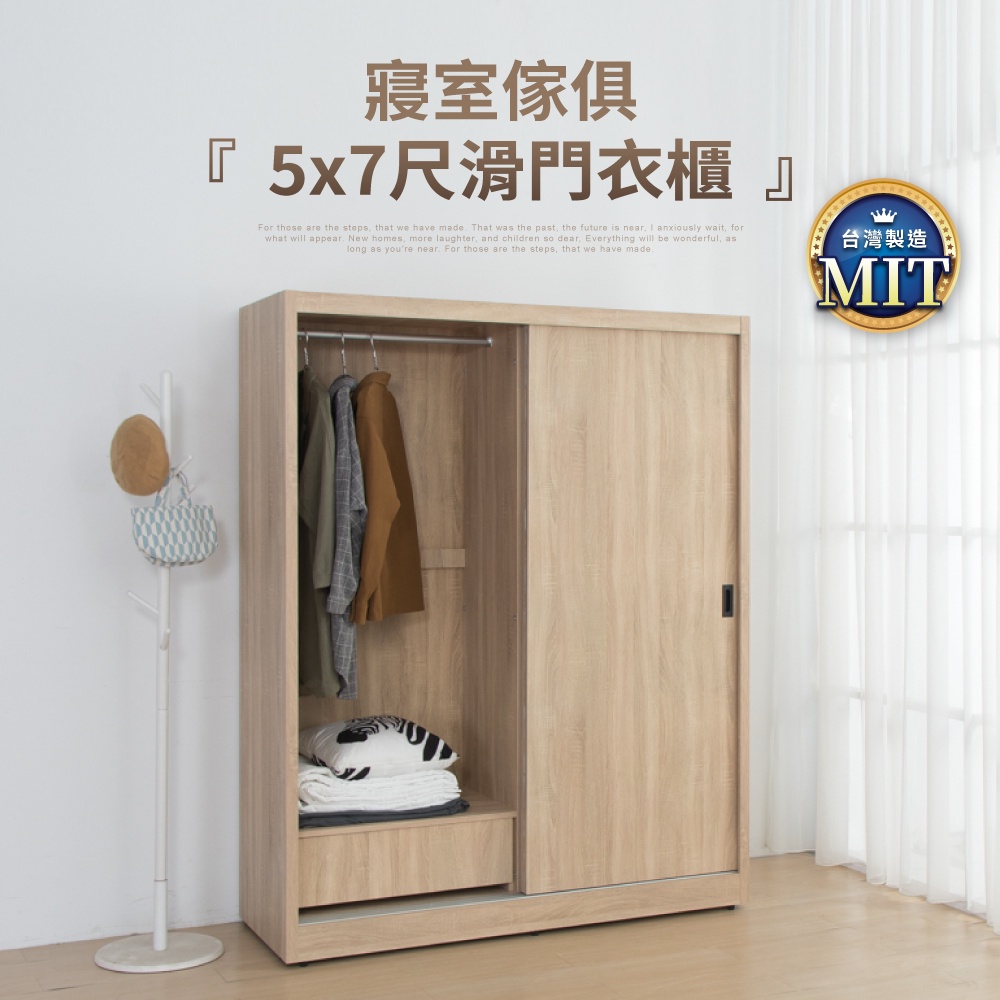 《台灣製造》五尺/四尺三桿一抽滑門衣櫃 衣櫥 2色可選【IDEA】暖棕柚木,4X7|暖棕柚木,5X7|北歐橡木,4X7|北歐橡木,5X7Wardrobes【IDEA】視覺概念