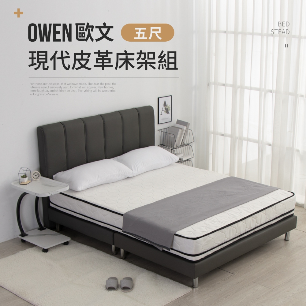 【IDEA】OWEN歐文現代5尺雙人皮革床架/房間3件組(床頭+床底)