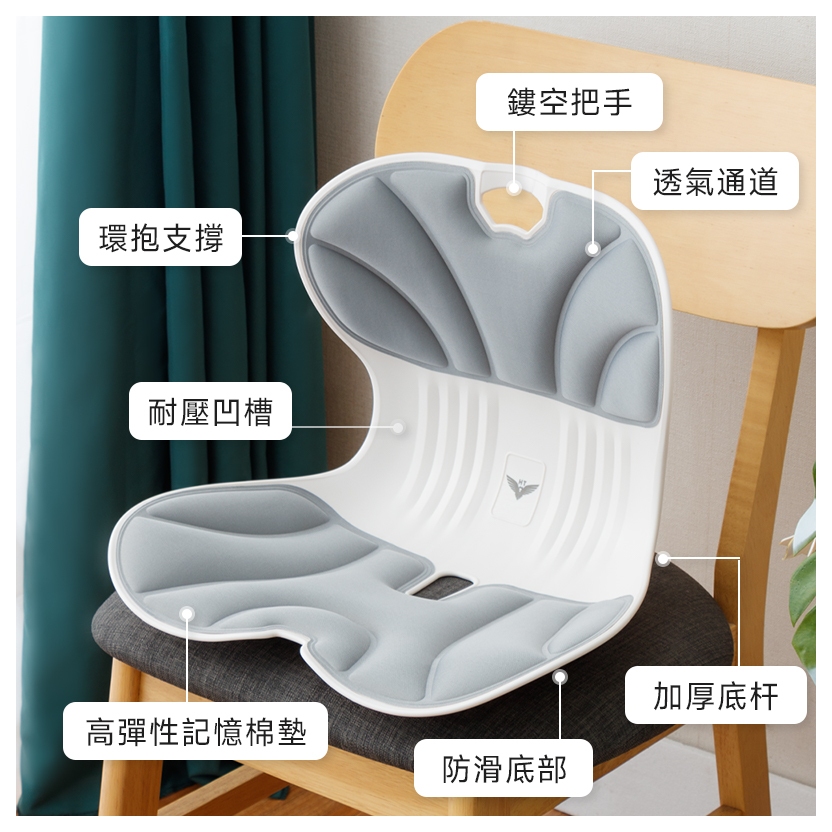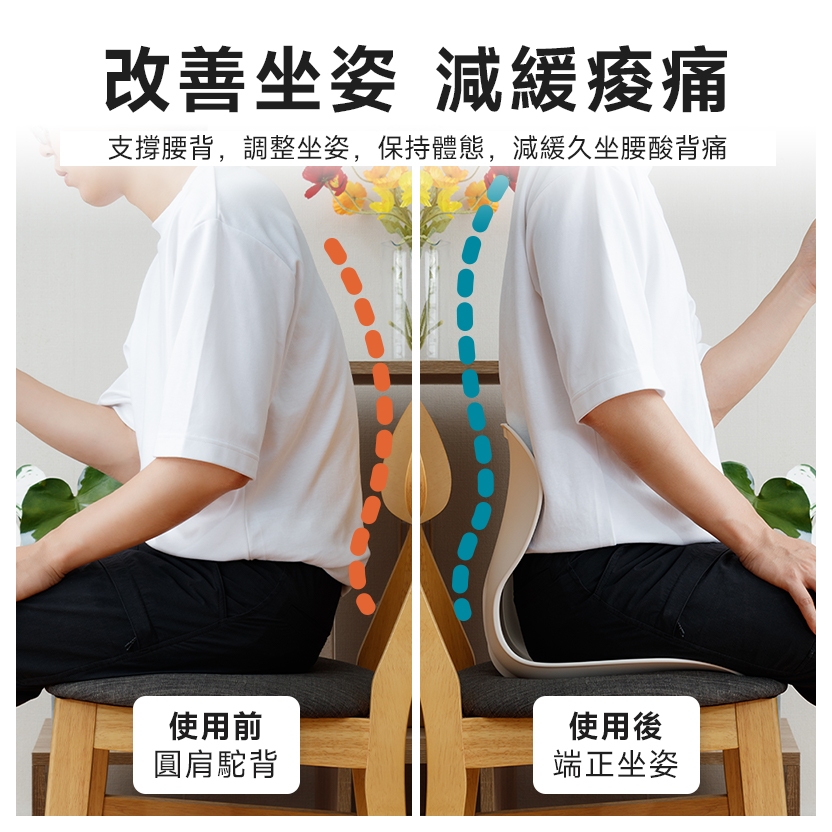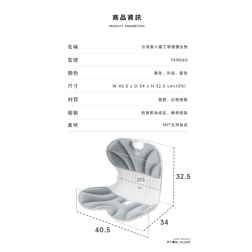 Amos 亞摩斯 台灣製人體工學護腰坐墊 靠墊 腰靠墊 護腰墊 YAN060藍色|黑色|灰色CushionsAmos亞摩斯