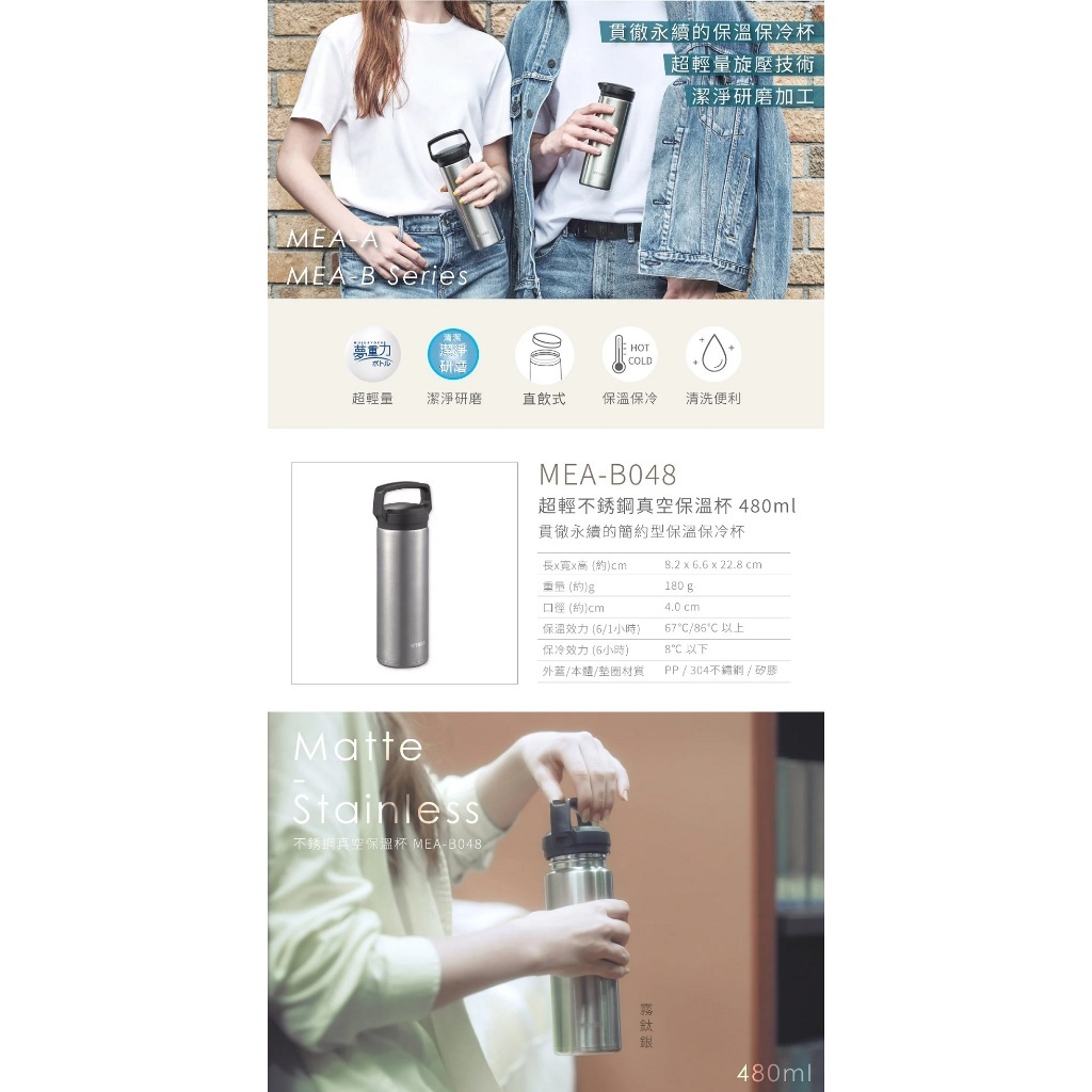 TIGER 虎牌 超輕量 不鏽鋼 480ml真空保溫杯 MEA-B048-XSTIGER 虎牌 超輕量 不鏽鋼 480ml真空保溫杯 MEA-B048-XSWater Bottles & AccessoriesAll Sale電器共和國