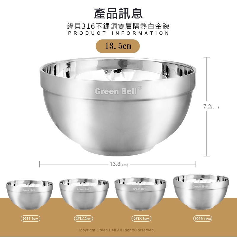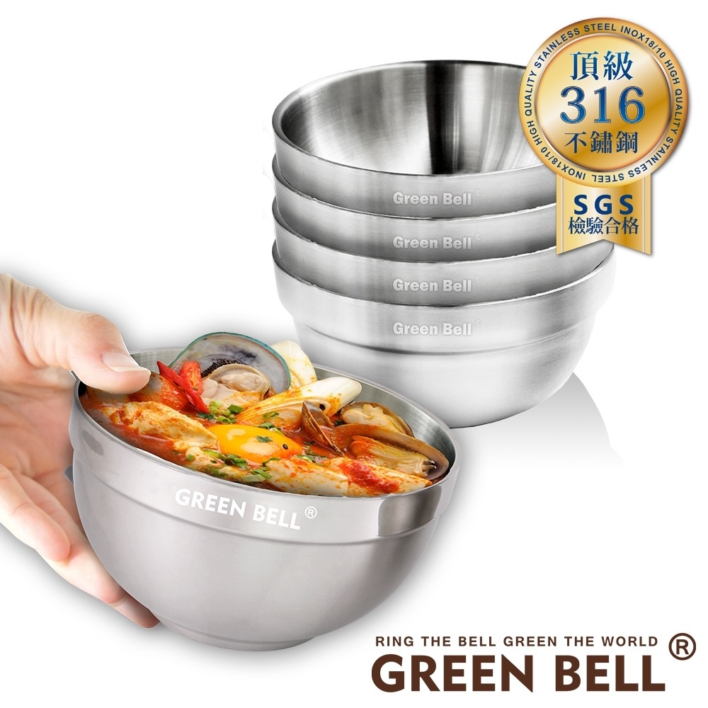 【GREEN BELL綠貝】頂級316不鏽鋼雙層隔熱白金碗(1入)-共4款《泡泡生活》戶外露營野餐 湯碗11.5cm(4入組)|12.5cm(1入)|13.5cm(1入)|15.5cm(1入)|11.5cm(1入)|12.5cm(4入組)BowlsAll my life 泡泡生活