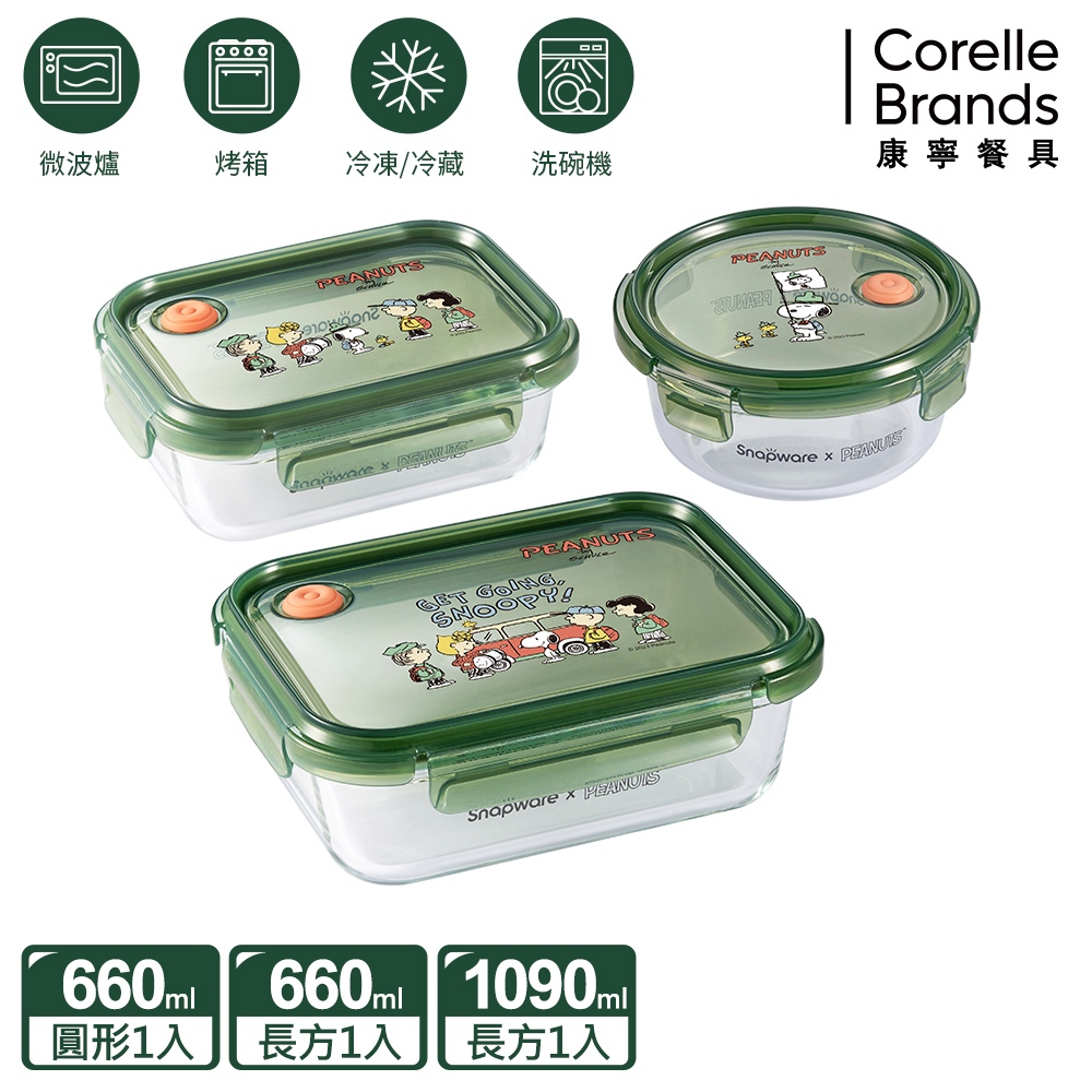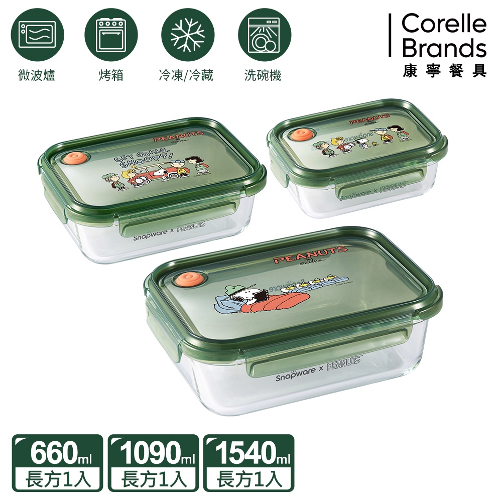 新品上市【康寧 Snapware】SNOOPY史努比露營趣耐熱玻璃/可微波/烤箱/保鮮盒-三件組露營趣C01|露營趣C02|露營趣C03Food StorageBlack Hammer|美國康寧|掌廚|IdEa LifE餐廚