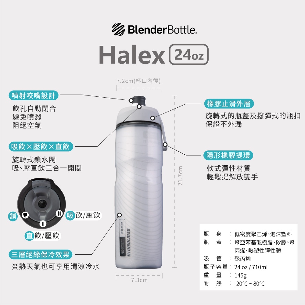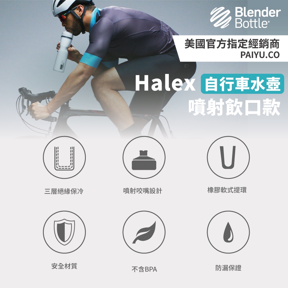 【BlenderBottle】自行車水壺〈Halex〉24oz|4色可選|噴射飲口 附吸管直飲【Halex 自行車款】靛藍|珊瑚紫|艷麗紅|時尚白OthersBlenderBottle美國官方授權