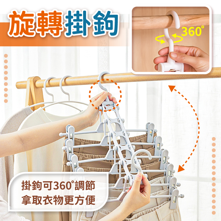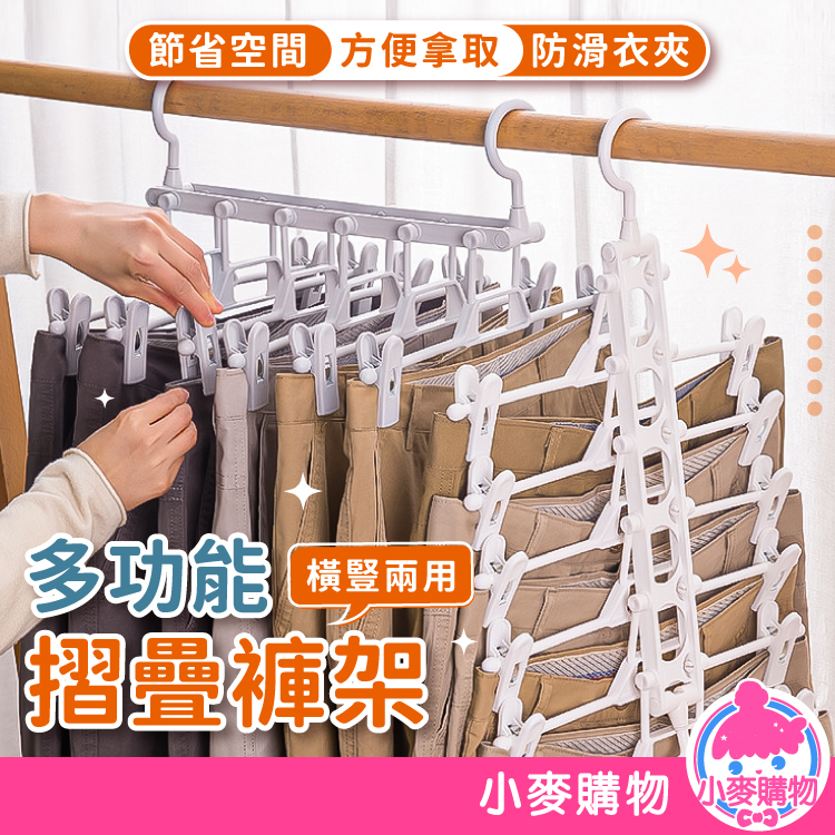 多功能摺疊褲架 折疊衣架 橫豎兩用 衣夾 褲夾 裙褲夾 衣櫃收納 魔術褲架 折疊褲夾 衣架 收納【小麥購物】【Y235】簡約白|曜石黑Hangers & Pegs 小麥購物