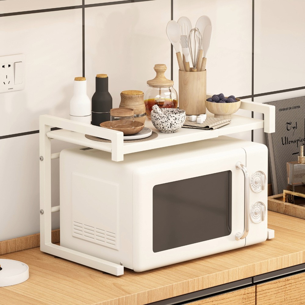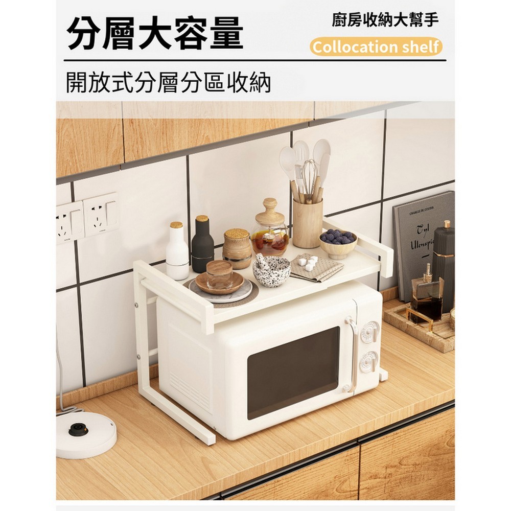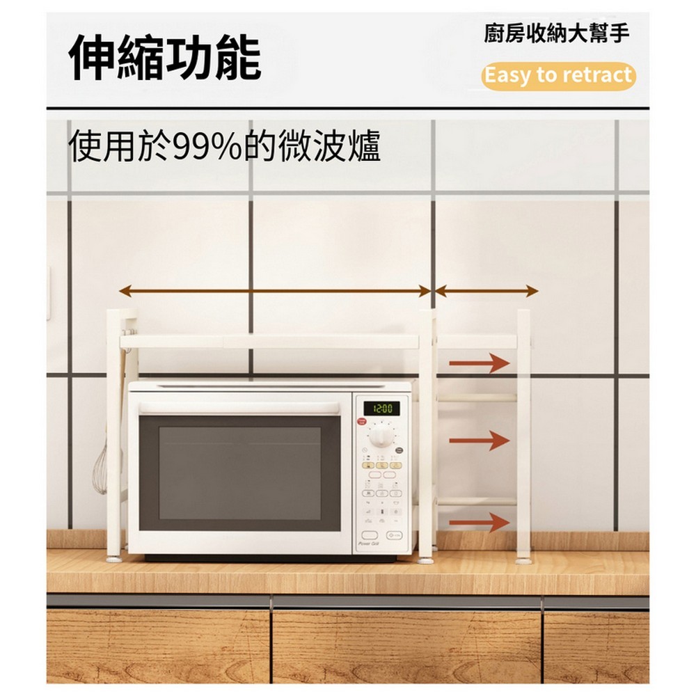 【AOTTO】廚房伸縮微波爐收納架(收納架 置物架 微波爐架)白色Kitchen RacksAOTTO創意家居