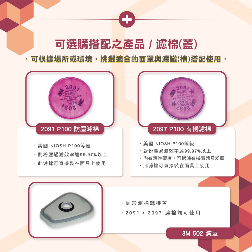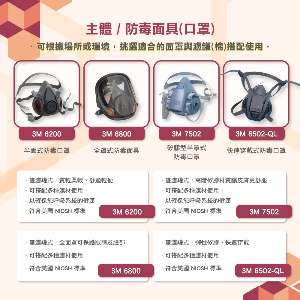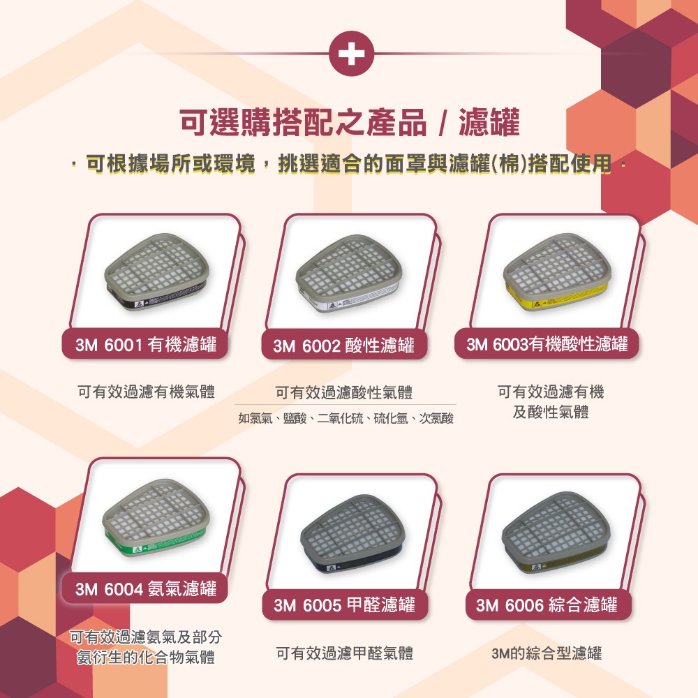 3M 防毒面具搭濾罐或濾棉 三件套 波蘭-美國製 6200防毒口罩防毒面罩可選搭6000系列濾罐或2091或2097濾棉6200面罩(不含配件)|6200*6001有機濾罐|6200*6002酸性濾罐|6200*6003有機酸性濾罐|6200*6004氨氣濾罐|6200*6005甲醛濾罐|6200*6006綜合濾罐|6200*2091防塵濾棉|6200*2097有機濾棉Protective Gloves, Goggles & MasksBlue Eagle 藍鷹牌專業口罩台灣總代理醫碩科技