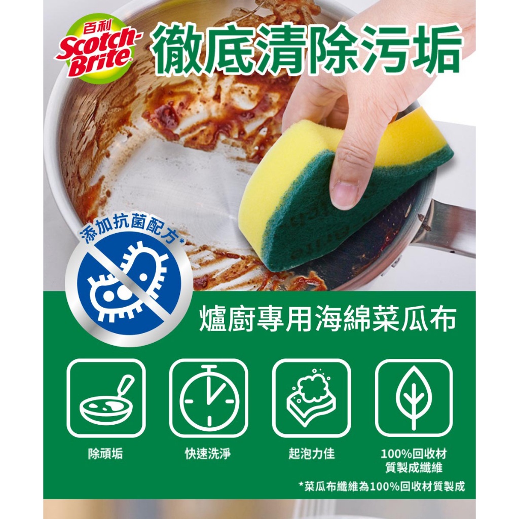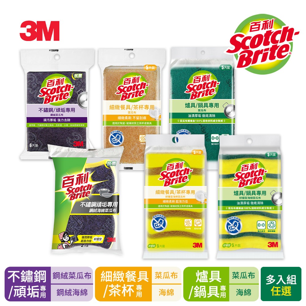 3M 百利 專用海綿菜瓜布(多款)-新款五片裝(多入組)爐具/鍋具專用好握5片裝*6|好握型海綿菜瓜布5片裝(小黃海綿)*6|不鏽鋼鋼絨菜瓜布2片裝*6|爐具/鍋具專用菜瓜布5片裝(大綠)*6|細緻餐具/茶杯專用5片裝(小黃)*6|抗菌不鏽鋼頑垢專用菜瓜布6片(鋼絨)*6Sponges & Scouring Pads3M 授權官方旗艦館