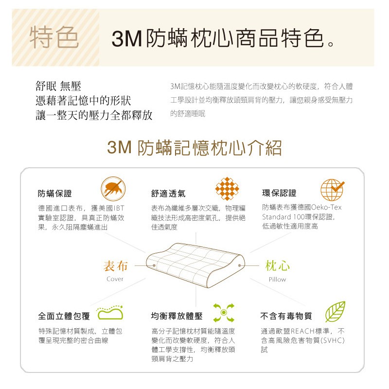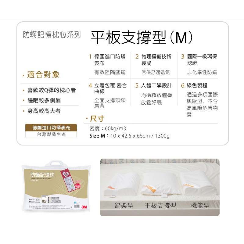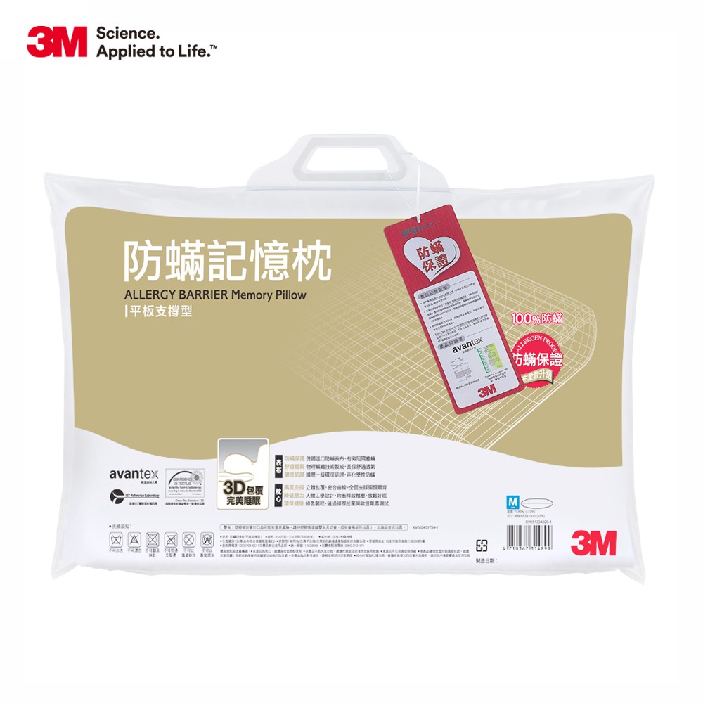 3M 防螨枕 記憶枕-平板支撐型(M/L)一入M|LPillows3M 授權官方旗艦館