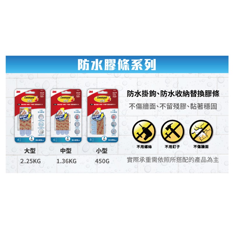 3M 無痕 防水替換膠條 6包/組大型|中型|小型|綜合(大x2+中x2+小x2)Hooks3M 授權官方旗艦館