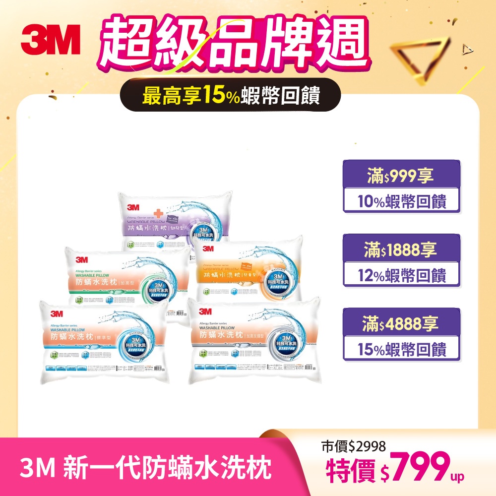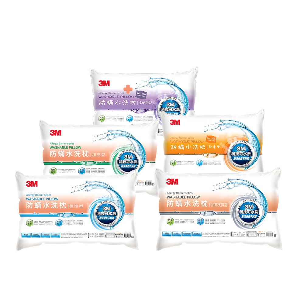 3M 新一代防蟎水洗枕 一入 防蟎枕【幼兒枕、兒童枕、標準枕、加高枕、加高支撐枕】標準型(中枕偏軟)|加高型(高枕偏軟)|幼兒型(附兒童枕套)|兒童型(附兒童枕套)|加高支撐型(中枕偏硬)Pillows3M 授權官方旗艦館