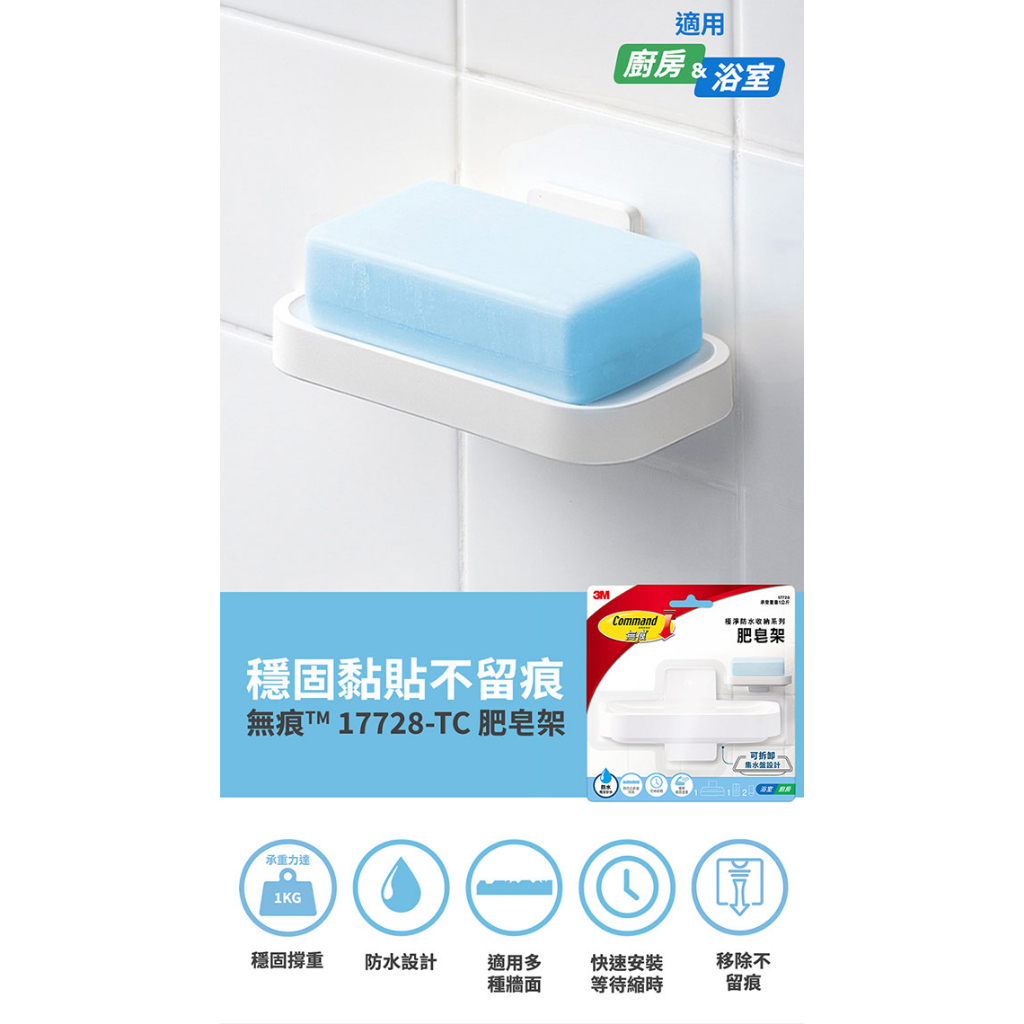 3M 17728 無痕極淨防水收納系列-肥皂架1組|2組Soap Dispensers, Holders & Boxes3M 授權官方旗艦館
