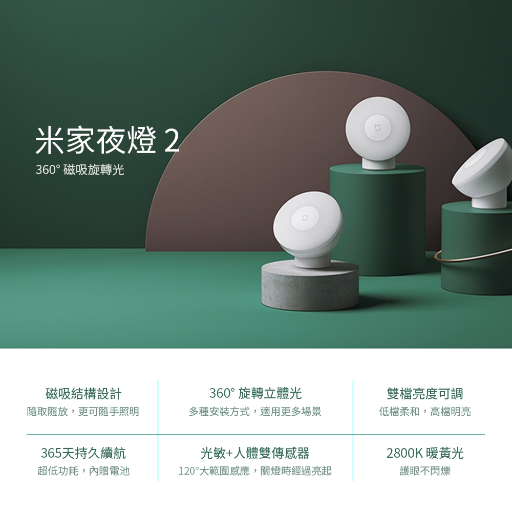 小米 米家夜燈2【台灣出貨】感應夜燈2 米家 紅外線夜燈 人體感應 小夜燈 樓梯燈 衣櫃燈 房間燈 床底燈 燈具米家夜燈2|New 米家夜燈3AP 3C旗艦館