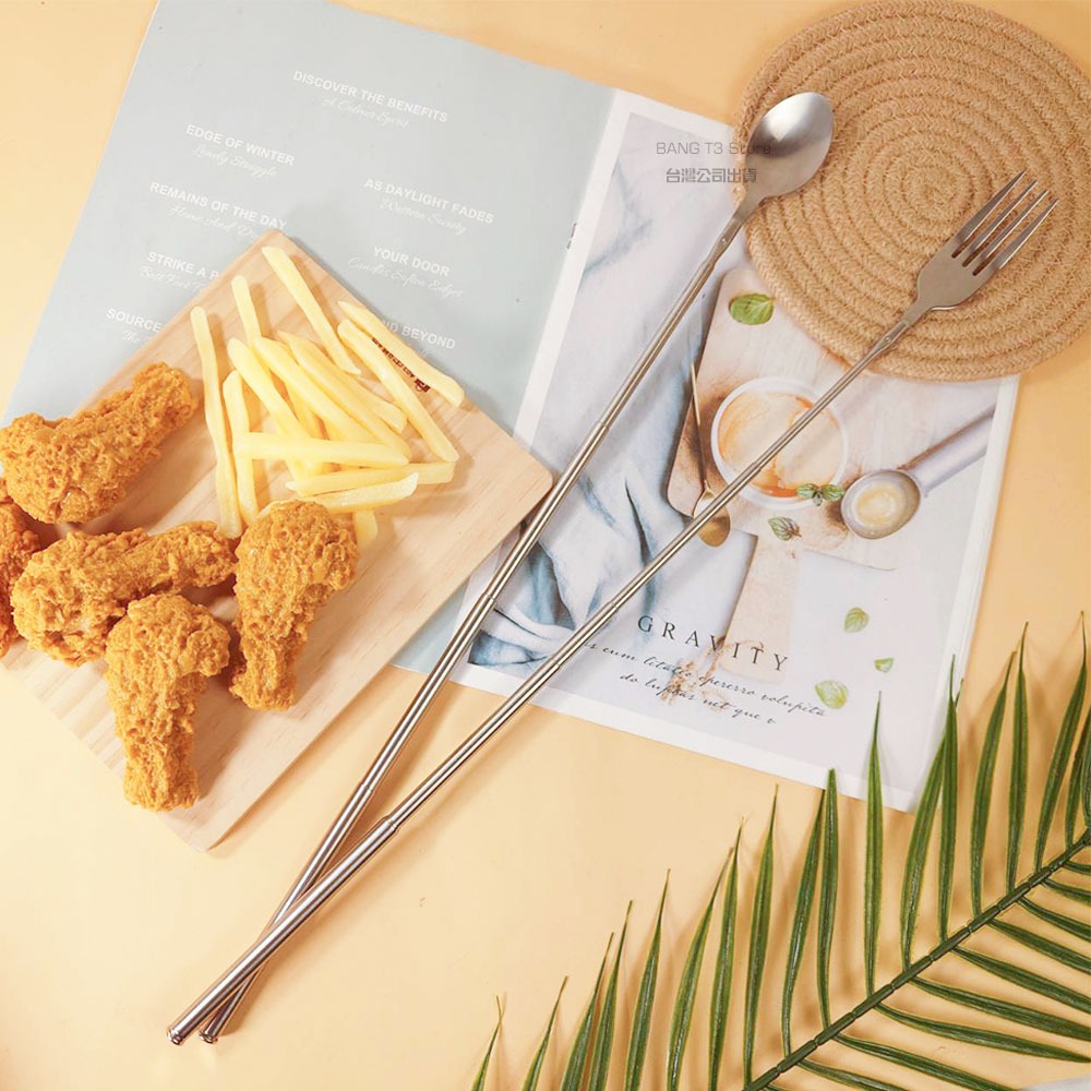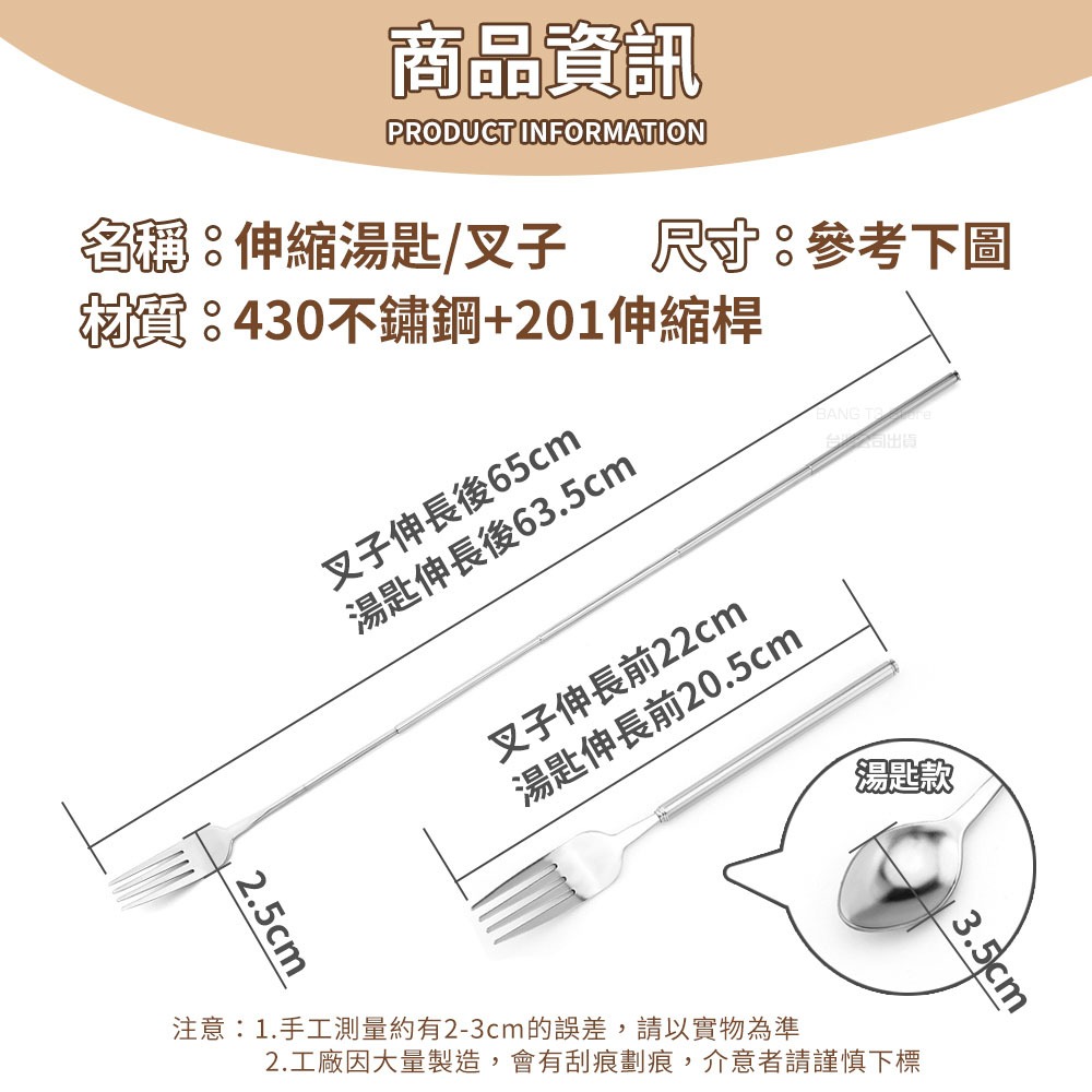 可伸縮餐具 台灣出貨 實拍影片 不鏽鋼餐具 伸縮餐具 便攜式餐具 伸縮湯匙 伸縮叉子 餐具 廚房用品【HF252】伸縮-餐叉|伸縮-湯匙CutleriesBANG 潮流男女裝服飾、流行生活百貨專賣